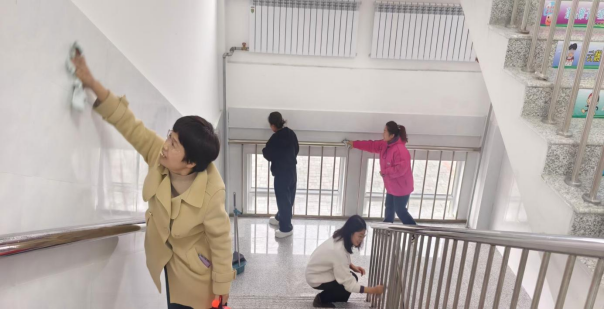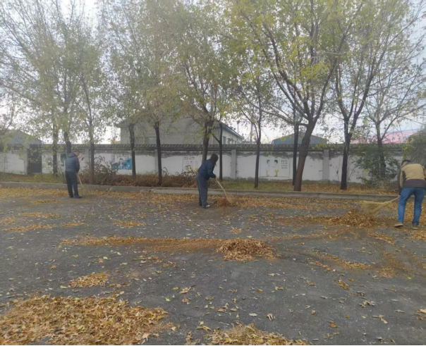 党员教师开展主题党日活动,清理校园周边垃圾,美化环境,用实际行动践行初心使命。