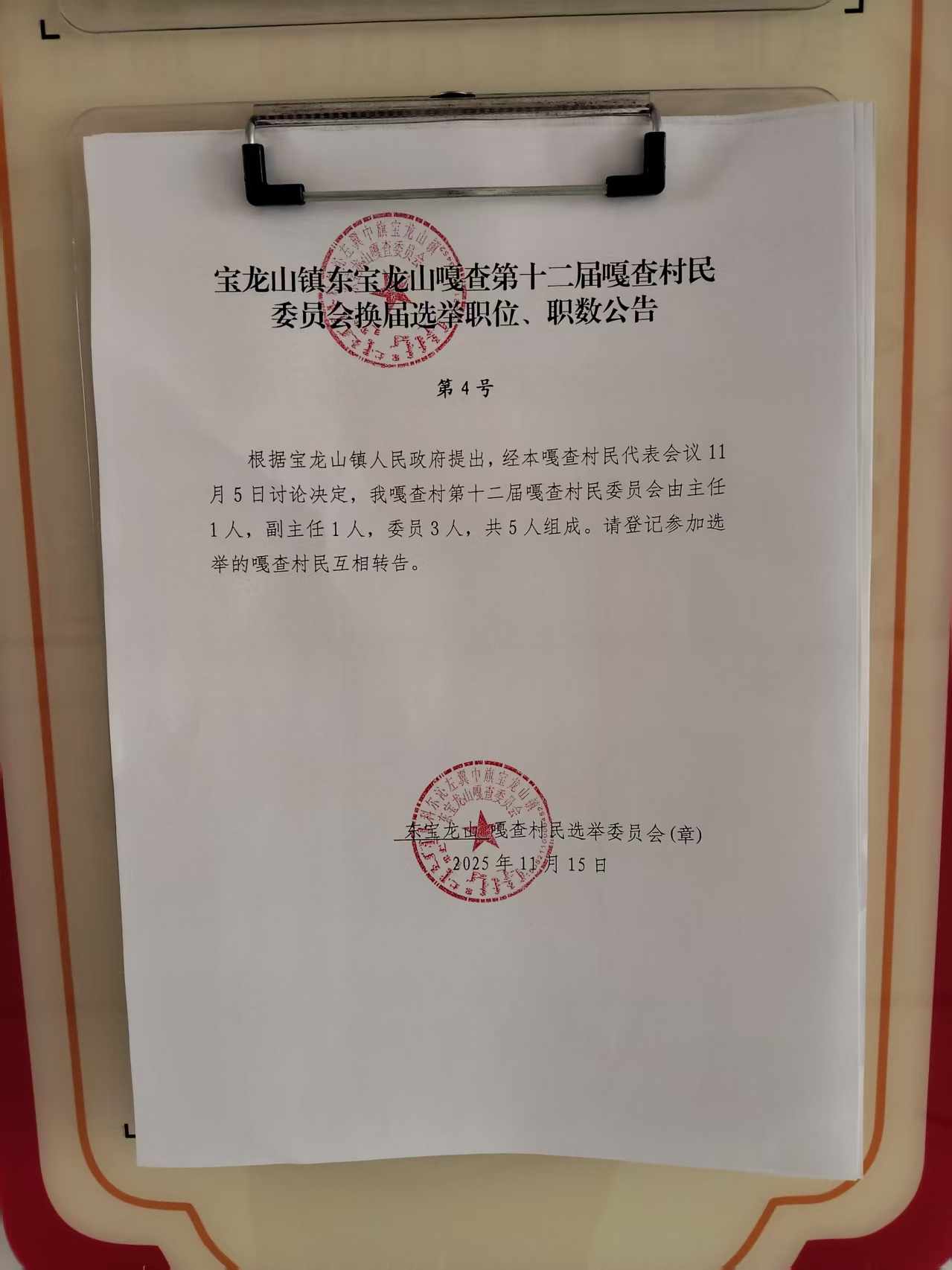 2025年东宝龙山嘎查第十二届嘎查村民委员会换届选举职位,职数公告