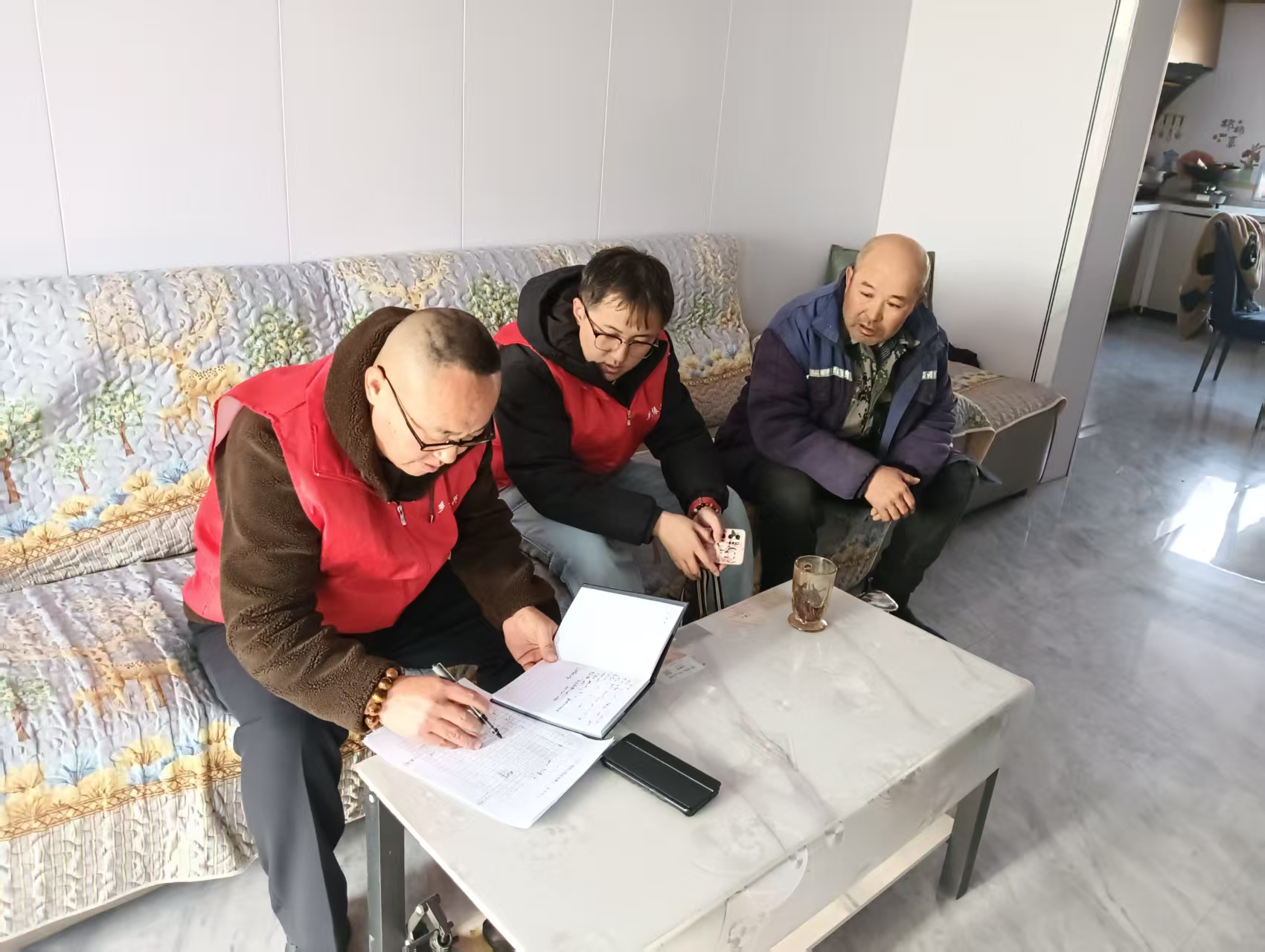 驻村队第一书记和村两委班子入户了解脱贫户家庭基本情况