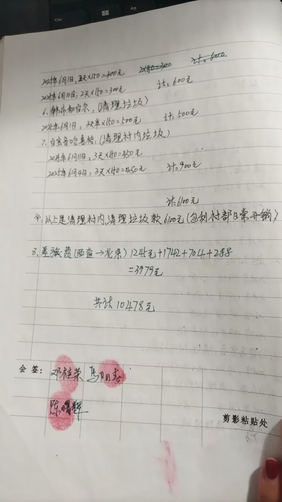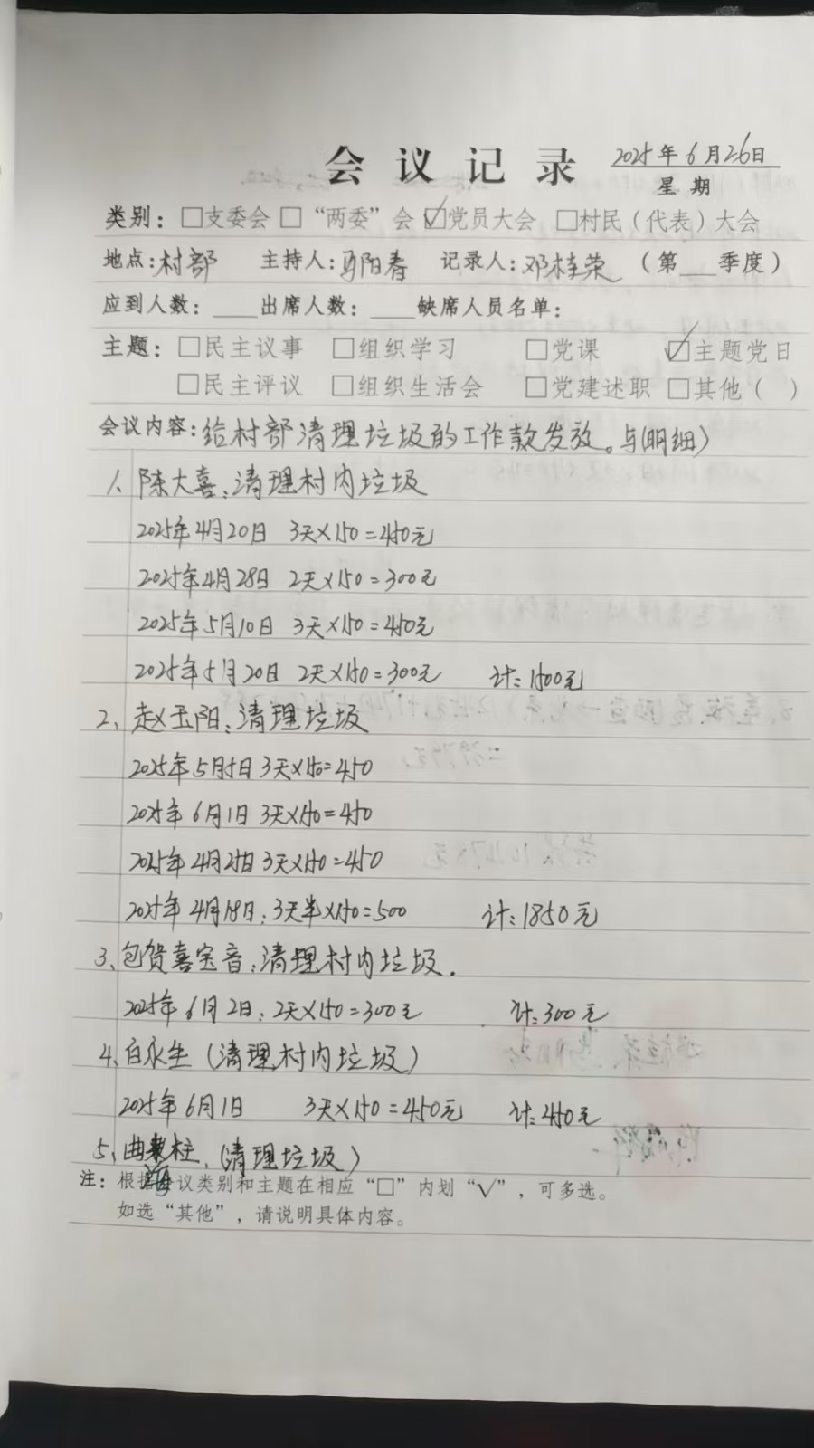 给村部清理垃圾的工作款发放明细