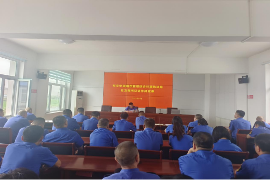7月1日上午,科左中旗城市管理综合行政执法局党支部开展庆“七·一”主题党日活动,党支部书记、局长贾万友同志主持,机关全体党员干部职工参加活动。贾万友同志以《筑牢作风根基 打造过硬执法队伍》为题讲作风党课,呼吁全体党员干部加强作风建设,努力打造一支“政治坚定、作风优良、纪律严明、廉洁务实”的城市管理执法队伍。集中观看警示教育片《反腐为了人民》第三集《揭开腐败隐身衣》,以震撼人心的真实案例和深入剖析,揭示了新型腐败与隐性腐败的隐蔽性及其对政治生态、市场经济秩序和群众利益的严重危害。活动最后,全体党员紧握右拳,面向鲜红的党旗,以铿锵有力的声音宣读入党誓词:“我志愿加入中国共产党……”誓言字字千钧,句句掷地有声,表达了全体党员对党的绝对忠诚和坚定决心。
