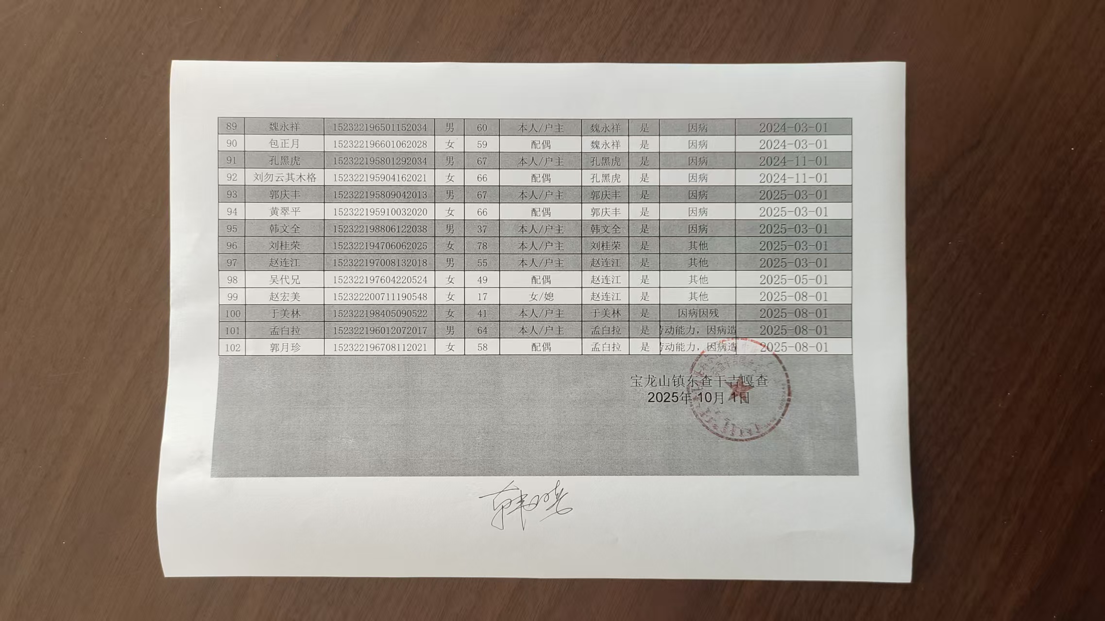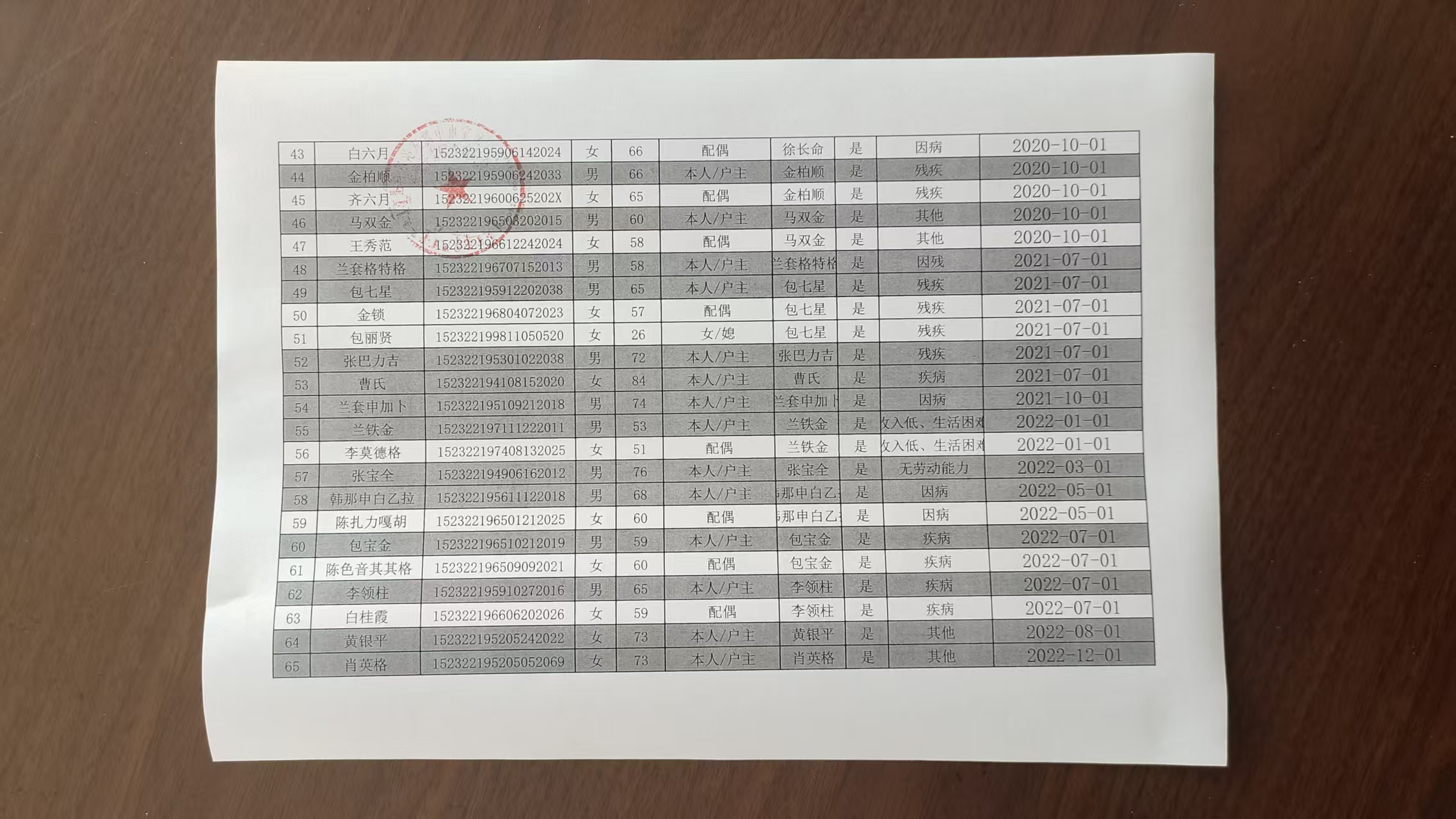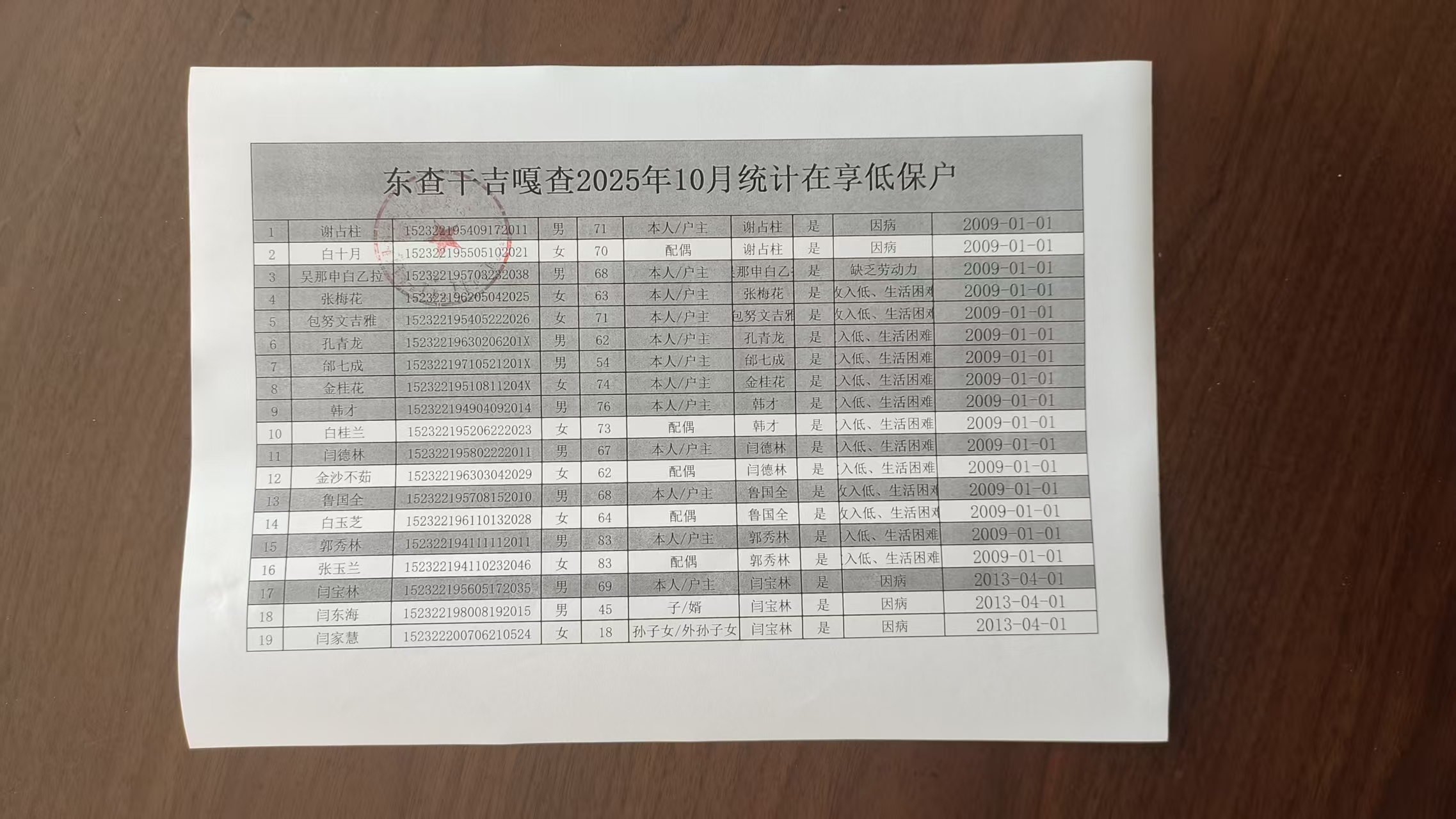 在享低保户名单