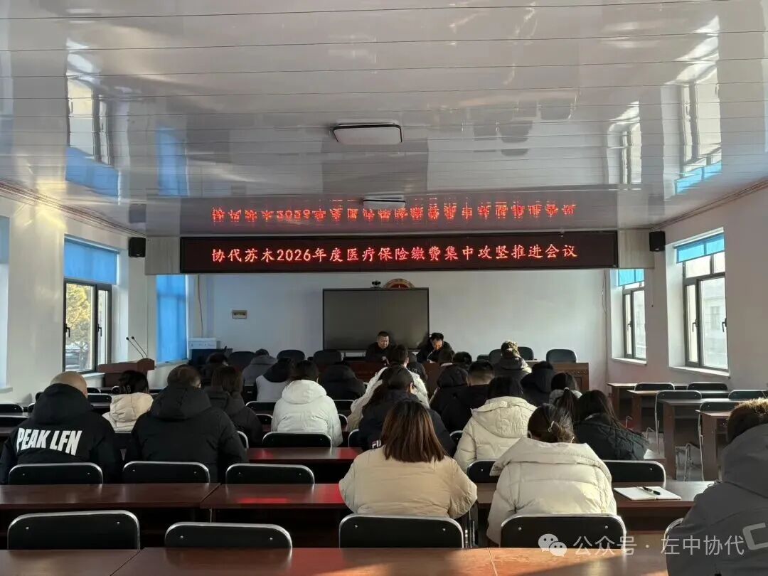 12月22日,协代苏木召开2026年度医疗保险缴费集中攻坚推进会议,会议由党委副书记、政府苏木达韩康平主持,各包片领导、包村干部参加。