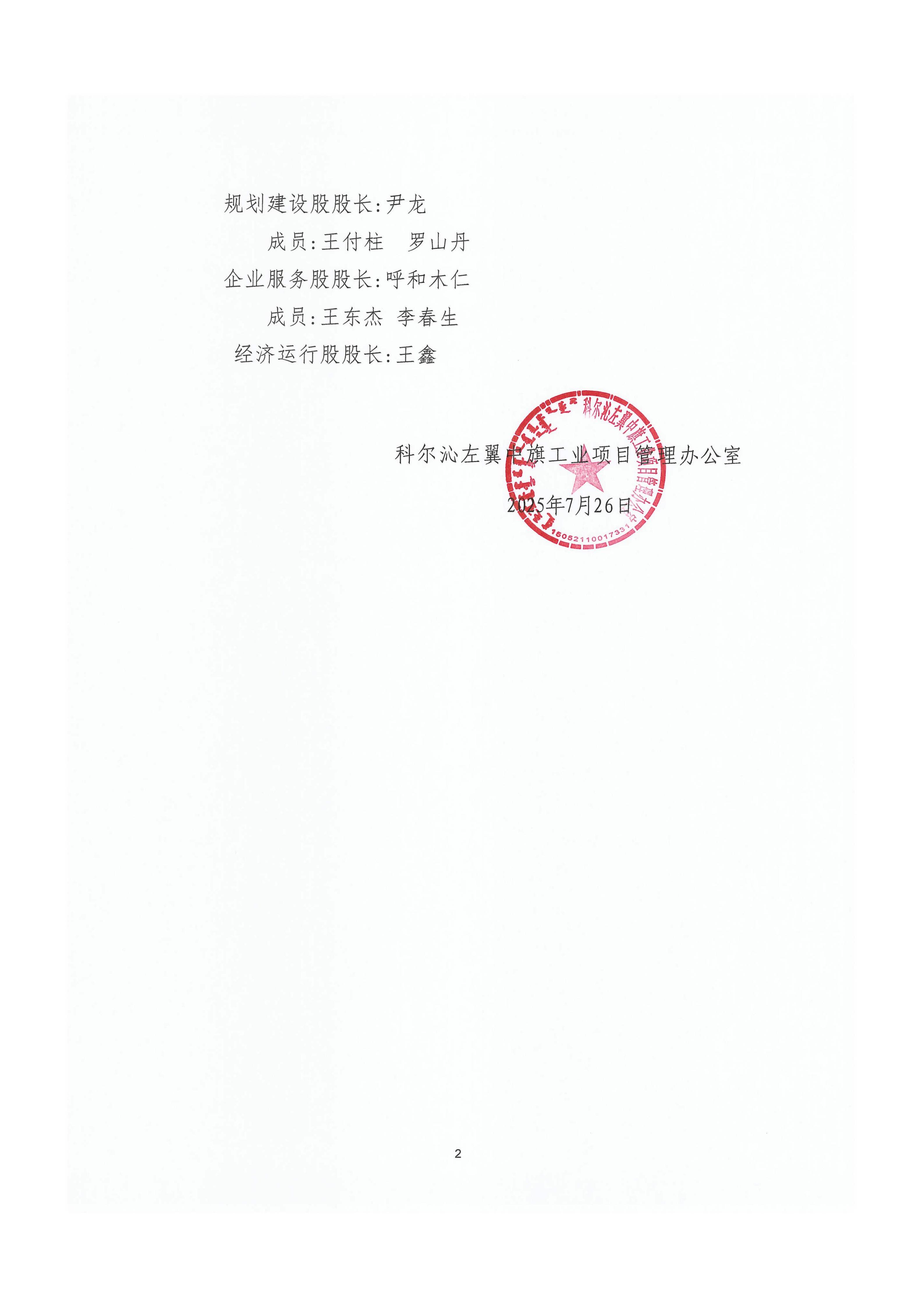 科尔沁左翼中旗工业项目管理办公室各股室人员组成