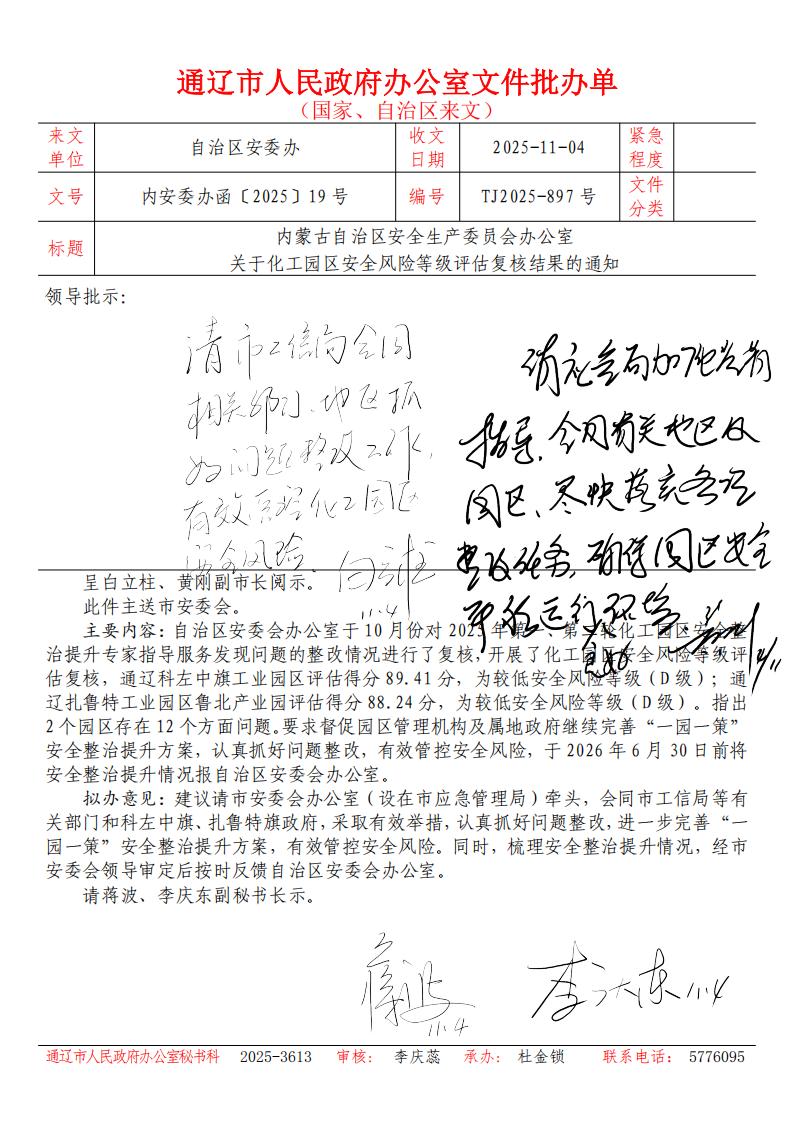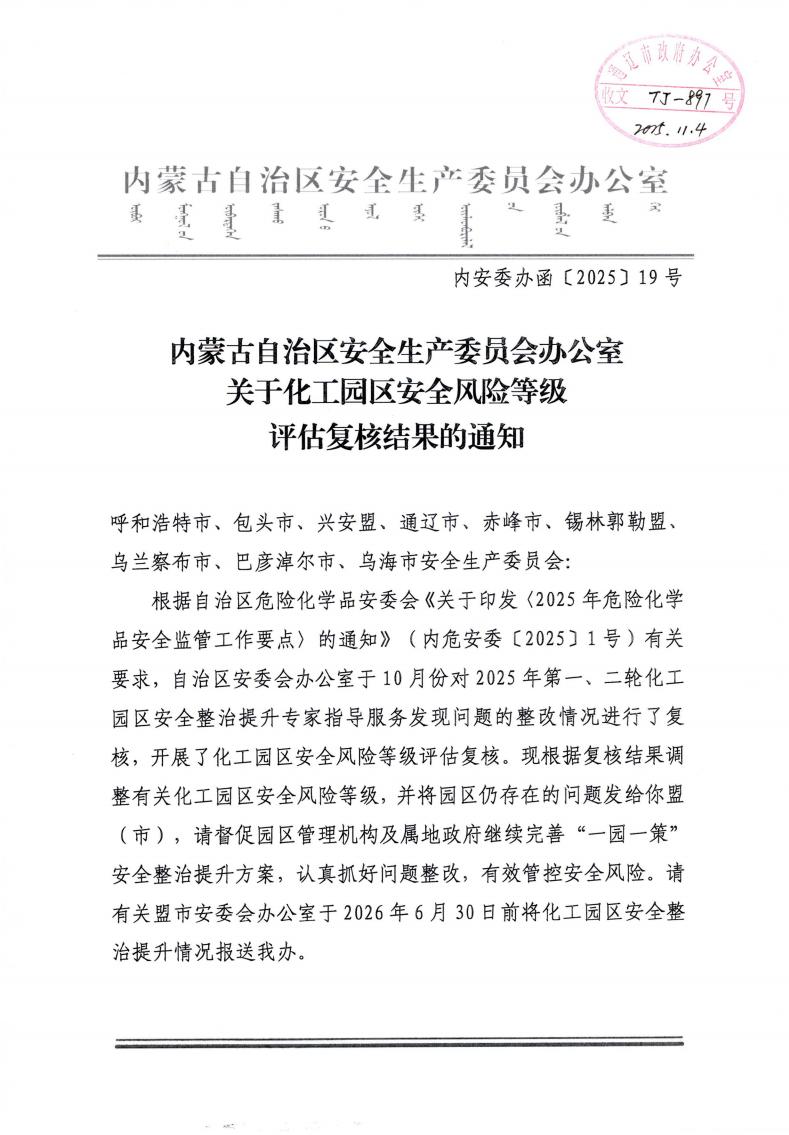 关于化工园区安全风险等级评估复核结果的通知
