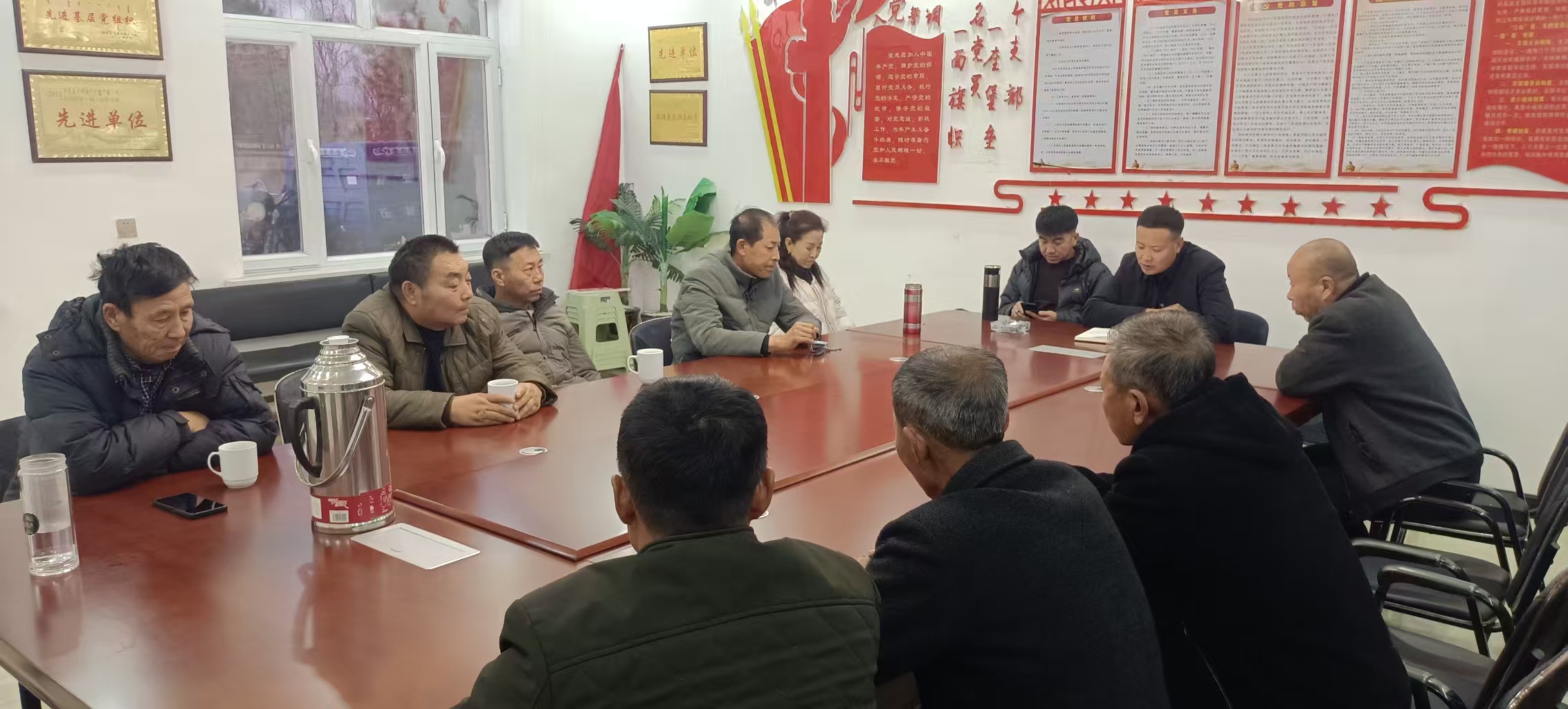 2025年12月18日保安屯村党支部召开12月份主题党日活动,参会党员10人,党支部书记孙建文主持集体学习会议,集中学习:"1.《习近平谈治国理政》第五卷;2.《中国共产党思想政治工作条例》",我支部针对老弱病残党员进行送学上门服务及未参会党员微信传达会议学习内容。