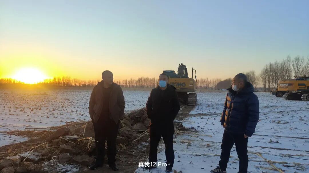 12月23日,架玛吐镇党委书记张志昌、人大主席单玉桩分别深入大信屯村、郭家窝堡村实地指导高标准农田项目建设进度