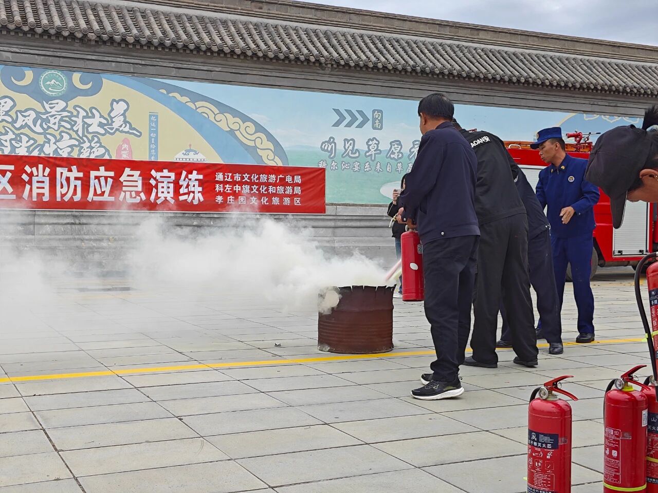 9月23日,由通辽市文化旅游广电局主办,科左中旗文化和旅游局、孝庄园文化旅游区承办的2025年秋季景区消防应急演练在孝庄园景区开展,各景区安全负责人及相关工作人员参加本次消防应急演练。