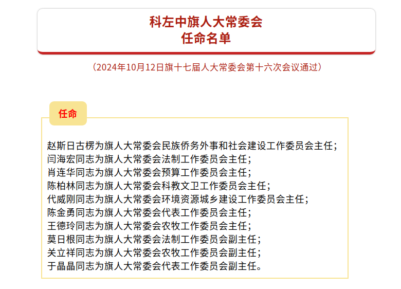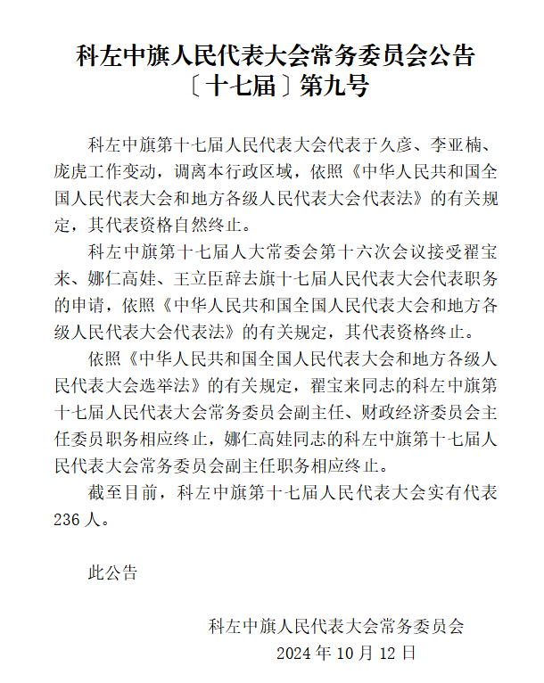 科左中旗第十七届人大常委会第十六次会议公告、决定
