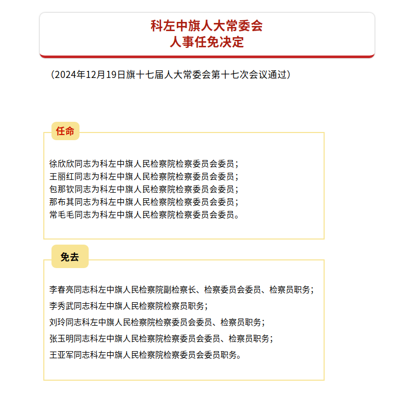 科左中旗第十七届人大常委会第十七次会议公告、决定