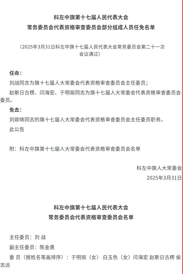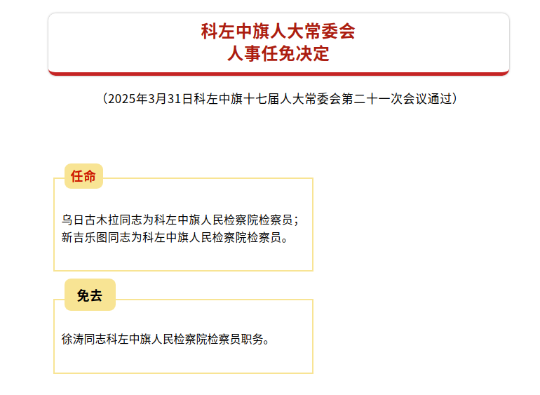 科左中旗第十七届人大常委会第二十一次会议公告、决定