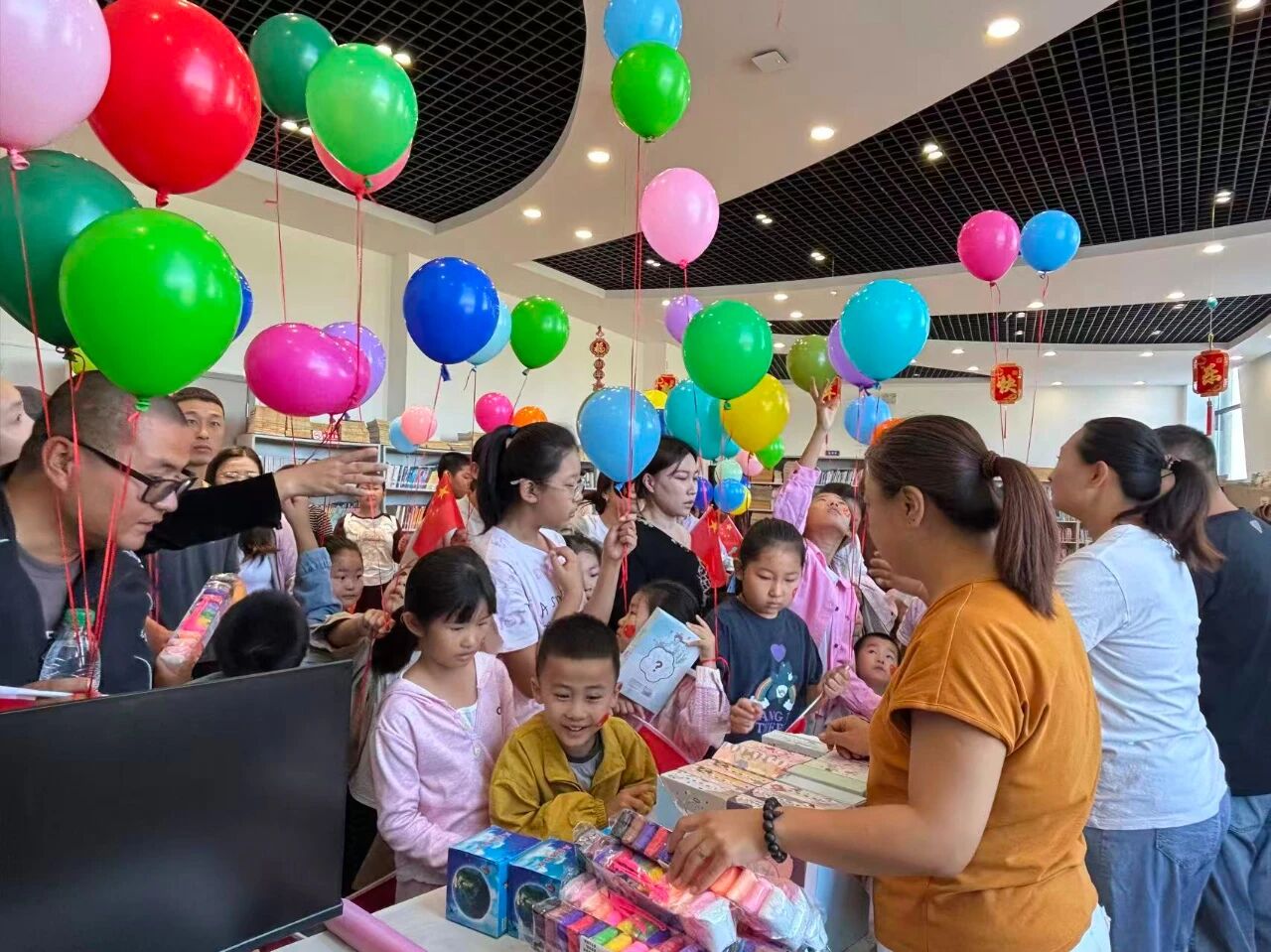 展览尾声,图书馆工作人员为参展小创作者们送上了精美图书与纪念礼品。一本本图书是知识的载体,更是文化的桥梁,让艺术创作与阅读成长在此刻交汇,鼓励孩子们在书香与艺术的滋养中,继续探索世界、抒发热爱。