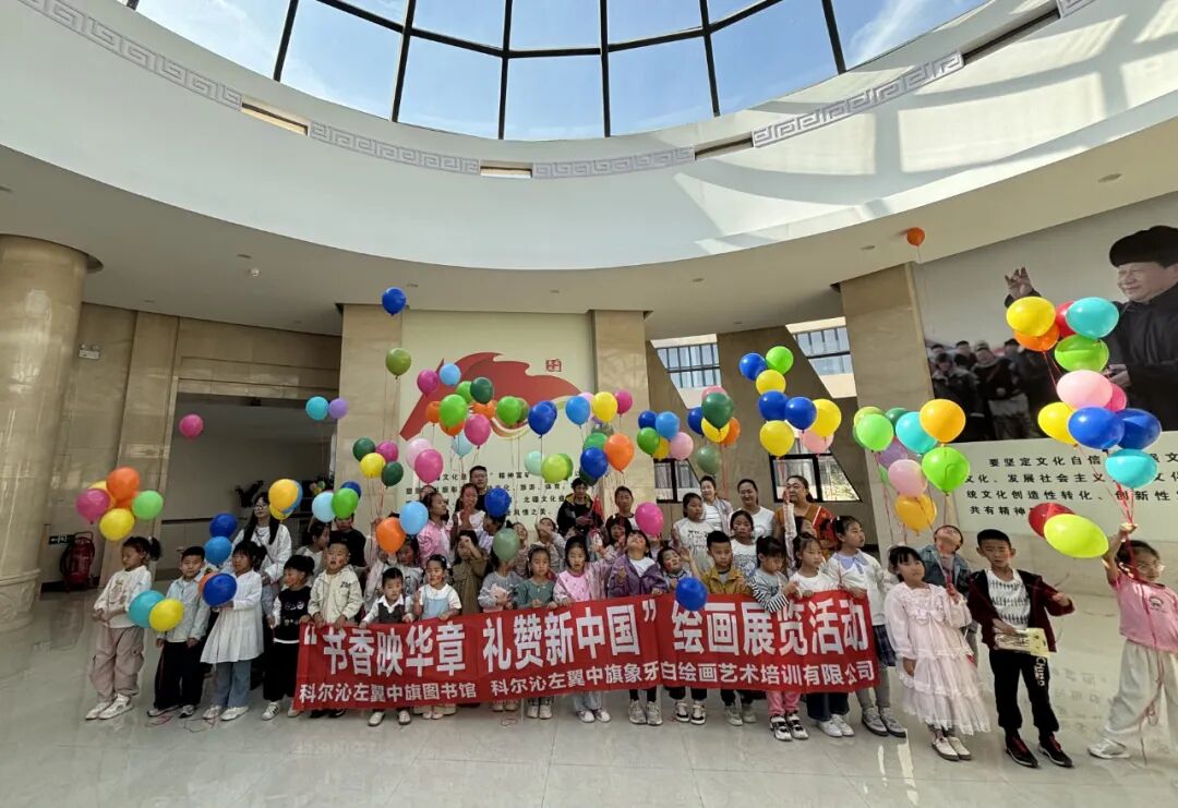 9月27日上午9点,科左中旗图书馆联合科左中旗象牙白绘画艺术培训有限公司,重磅推出“书香映华章 礼赞新中国”绘画展览活动。这场充满童趣与爱国热忱的艺术盛宴,以稚嫩笔触勾勒家国情怀,用创意巧思礼赞盛世中国。
