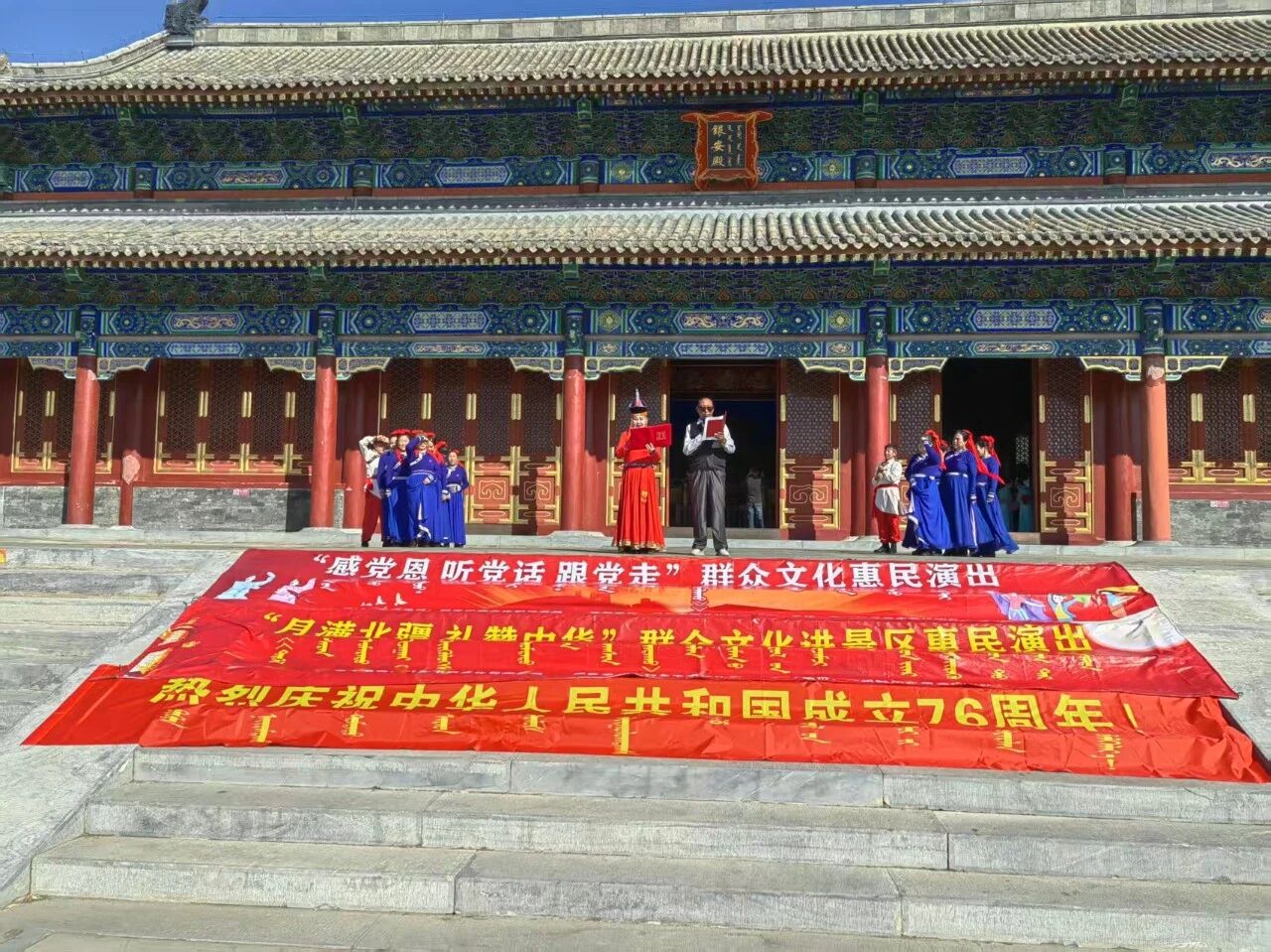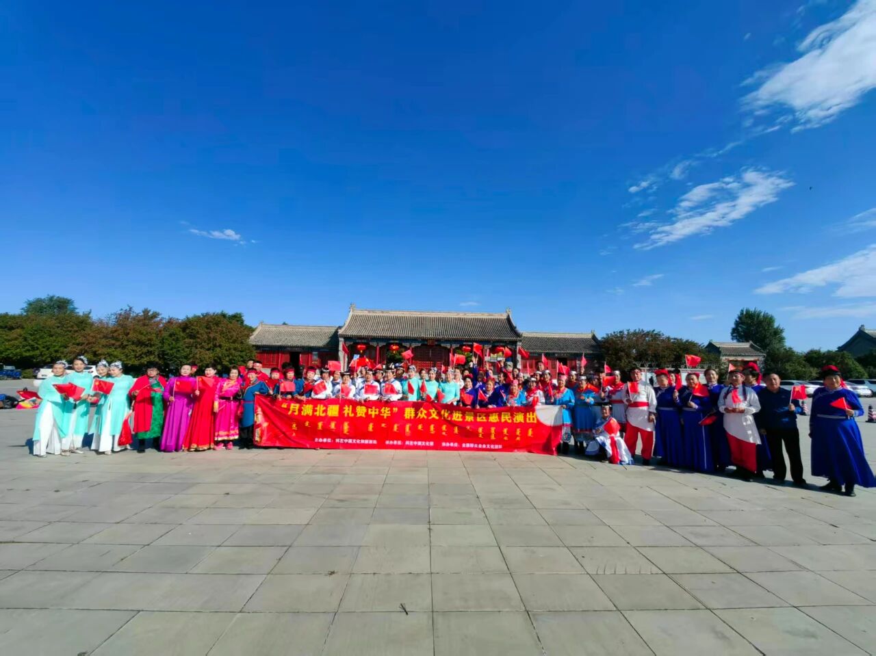 10月1日,正直祖国母亲76华诞的美好时刻,旗文化馆组织分馆人员走进孝庄园文化旅游景区举办“月满北疆 礼赞中华”群众文化进景区惠民演出活动。载歌载舞共叙家国情怀,同贺团圆佳节。