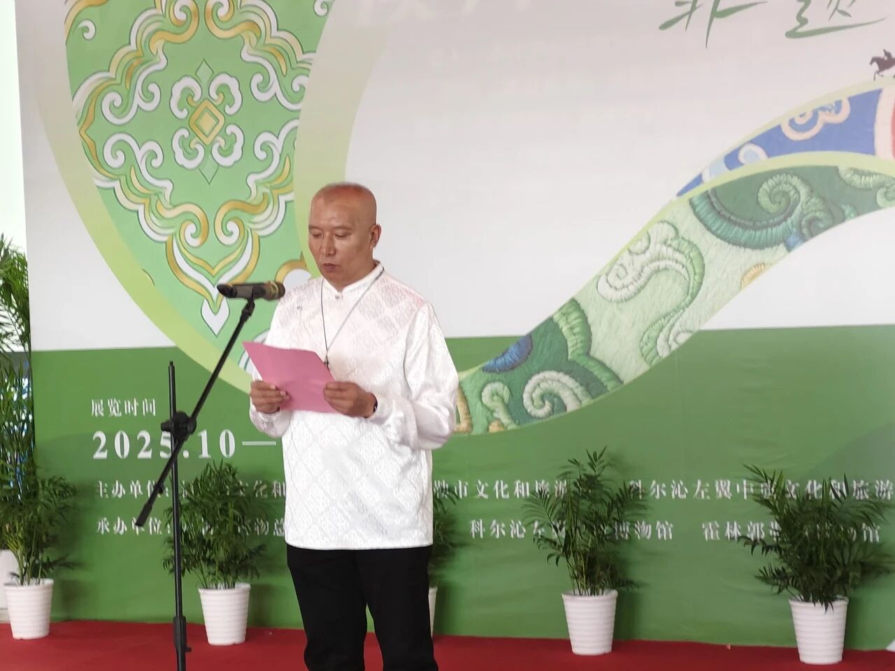 此次展览以“驰骋风光里・非遗活态中”为核心,以“跨越千里的相遇——草原风与齐地情的对话”为引,通过三部分内容构建沉浸式文旅体验,将科左中旗的碧草蓝天与非遗瑰宝带到齐地,推动两地文化碰撞出彩。“印象左中——科左中旗文旅宣传片展播”,作为展览开篇,通过播放文旅宣传片,浓缩呈现科左中旗的旅游资源、特色饮食与非遗魅力,为观众打造沉浸式初体验,为后续章节铺垫氛围。在“文化之魂——指尖流淌的非遗瑰宝”环节,集中展示了科左中旗各级非遗项目。蒙古族刺绣与传统服饰,以针为笔、以线为墨,尽显蒙古族姑娘的心灵手巧;蒙古族传统乐器承载着草原儿女乐观豁达、昂扬向上的生活情怀;“男儿三艺”(搏克、射箭、赛马)生动彰显草原汉子的威武气魄与豪迈胸襟;炒米制作、蒙古香加工等传统技艺,凝结着蒙古族人民顺应自然的生存智慧,直观传递出北疆非遗文化中代代相传的匠心坚守。最后聚焦科尔沁传统蒙古包,采用“场景复原+互动体验+文化解读”模式。现场1:1复原蒙古包内部场景,结合文字解读“哈那、乌尼杆、陶脑”的搭建逻辑与“逐水草而居”的生存智慧,通过“解码草原的‘移动家园’”来呈现草原文化与自然环境的适配性。