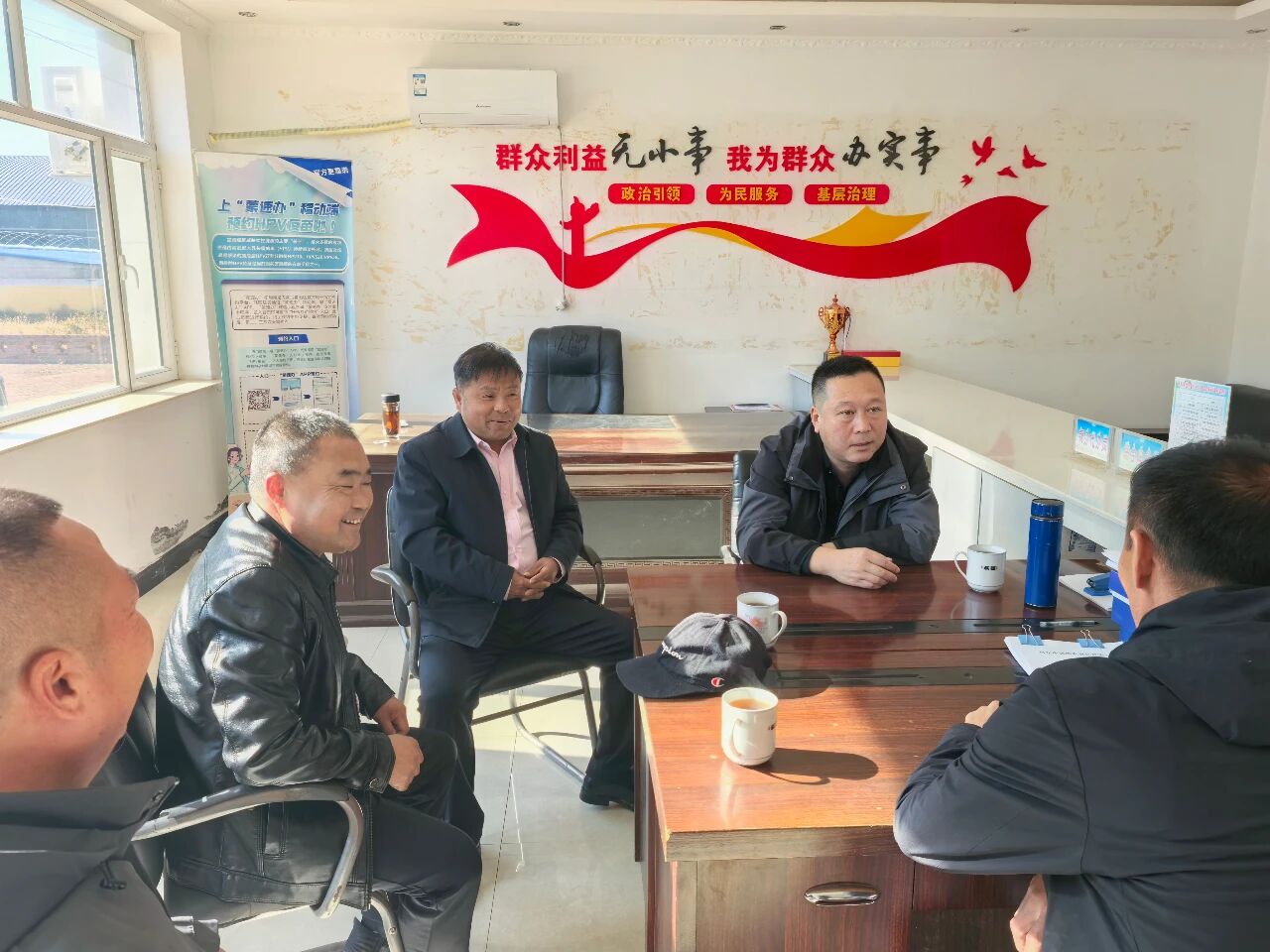 文旅局相关负责同志与驻村工作队进行座谈,详细了解驻村工作队员日常工作、生活等情况,并为驻村工作队送去档案柜、打印机硒鼓等办公设备。