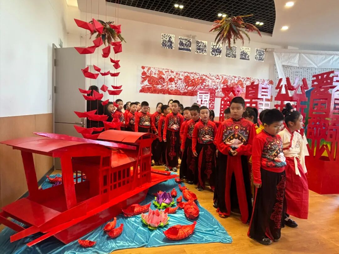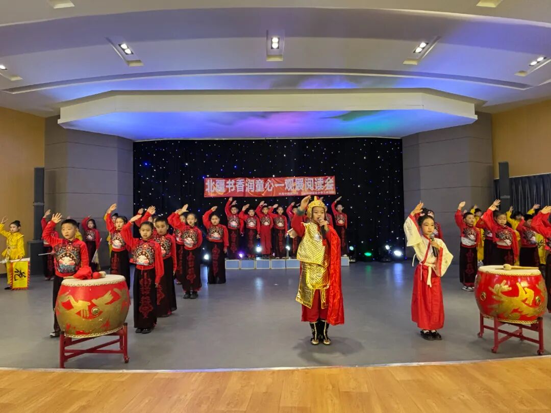 观展结束后,精彩的学生表演轮番登场。同学们早已精心准备,唱歌、朗诵、讲故事、课本剧片段演绎……