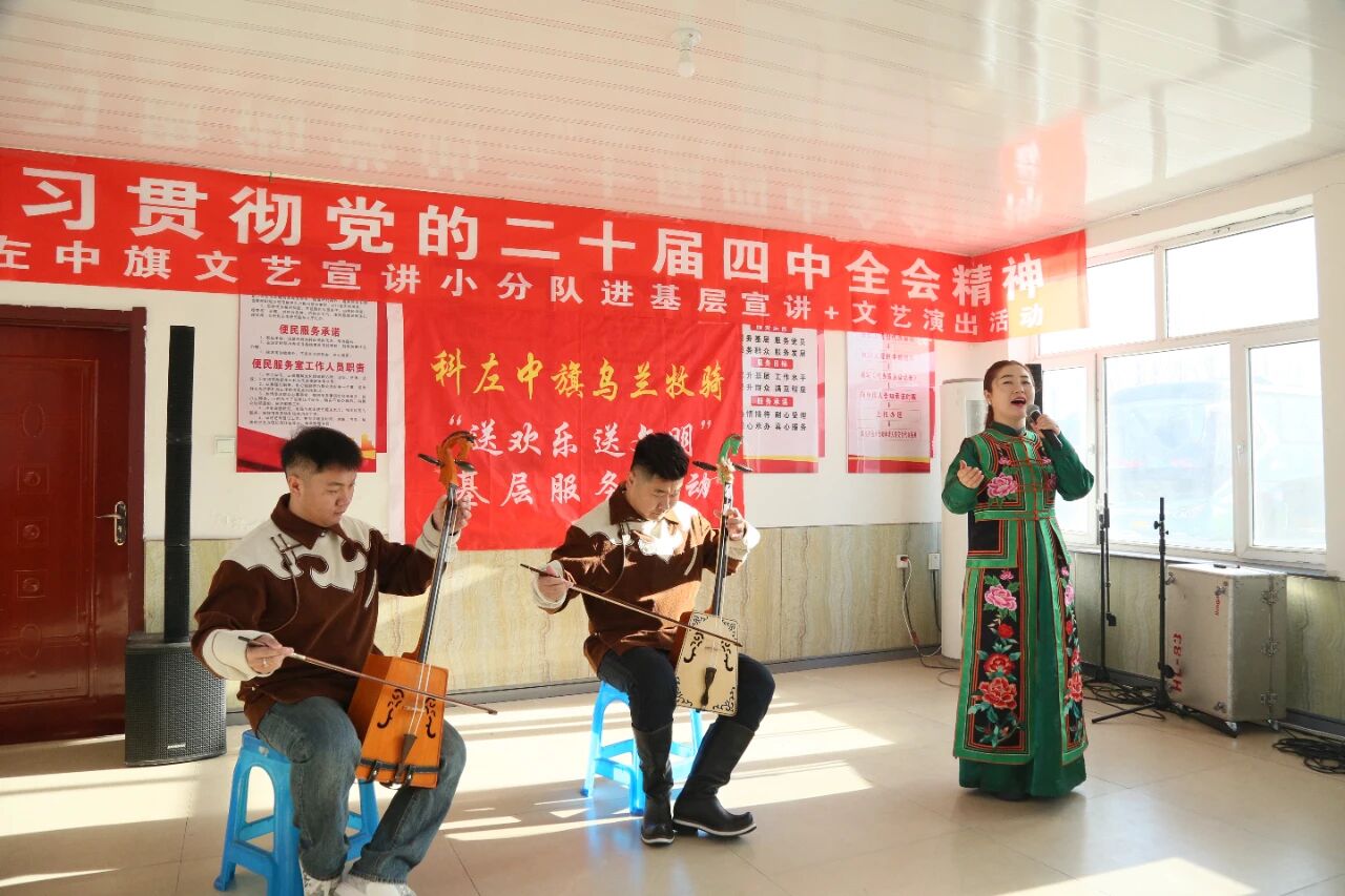 12 月 3 日至 4 日,科左中旗乌兰牧骑化身 “文艺宣讲小分队”,走进图布信苏木开展 “送欢乐 送文明” 基层服务活动。通过室内集中演出与入户精准服务相结合的方式,让党的政策理论伴着文艺馨香浸润群众心田。