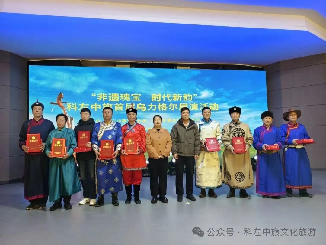 为深入传承与弘扬中华优秀传统文化,让珍贵的非物质文化遗产乌力格尔被更多群众熟知、喜爱,12月25日,“非遗瑰宝,时代新韵”科左中旗首届乌力格尔展演活动在旗乌兰牧骑成功举办。本次活动由中共科尔沁左翼中旗委员会宣传部、旗文化和旅游局主办,旗文化遗产保护中心承办,为现场观众呈现了一场兼具传统底蕴与时代气息的文化展演活动。