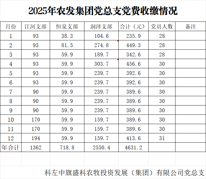 农发集团2025年党费收缴情况