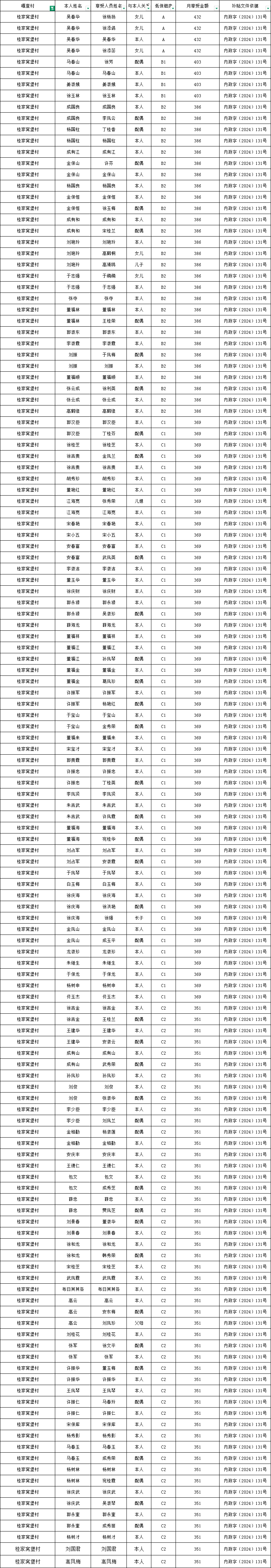 桂家窝堡村2026年1月农村低保资金发放花名册