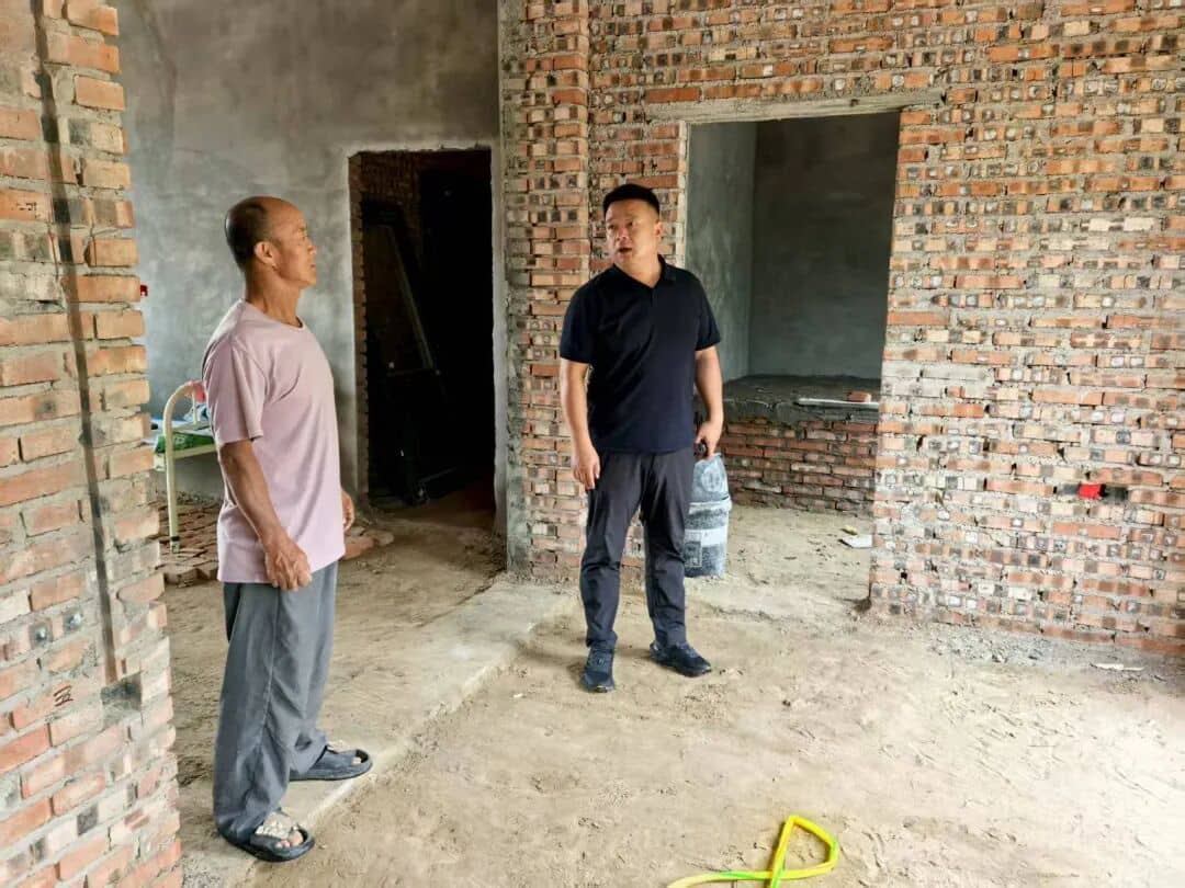 门达镇地查看危房改造项目进展情况