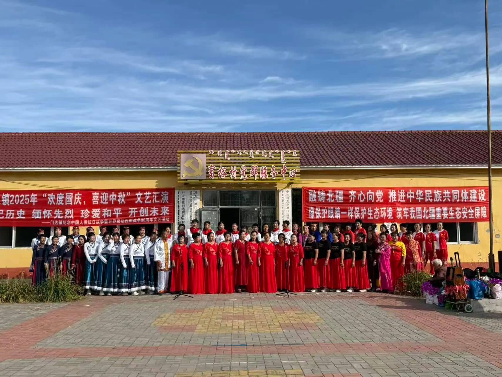 9 月 19 日,门达镇热闹非凡,成功举办了 “欢度国庆,喜迎中秋” 文艺汇演暨纪念中国人民抗日战争暨世界反法西斯战争胜利 80 周年文艺活动。全镇 20 个民间艺术团、舞蹈队纷纷登台献艺。节目形式丰富多样,涵盖了舞蹈、歌曲、诗朗诵等。演员们以饱满的热情、精湛的技艺,为观众带来了一场视听盛宴。他们不仅通过精彩表演展现了新时代农牧民积极向上的精神风貌,欢庆中秋、国庆佳节,还以独特的方式回顾历史,致敬先辈,让现场观众深受感动与鼓舞。此次活动丰富了群众的文化生活,营造了浓厚的节日氛围,也进一步增强了全镇人民的凝聚力和爱国情怀。