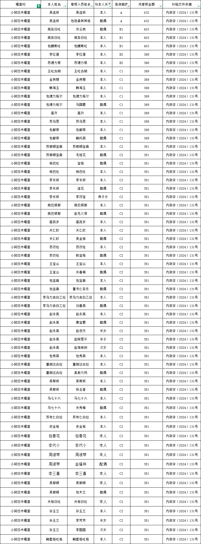 小努日木嘎查2026年1月农村低保资金发放花名册