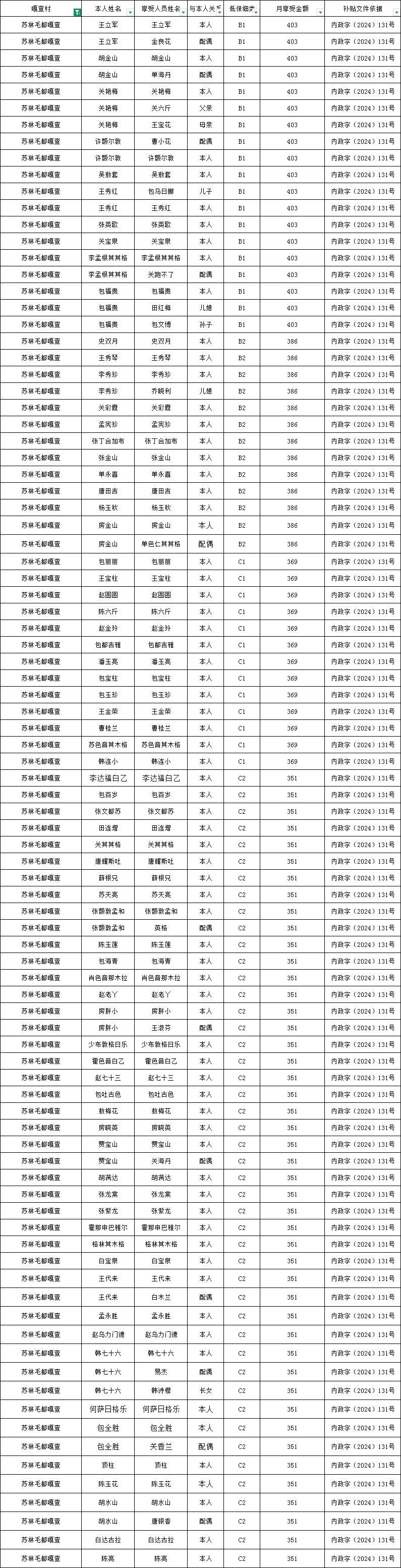 2026年1月份架玛吐镇苏林毛都嘎查农村低保资金发放花名册