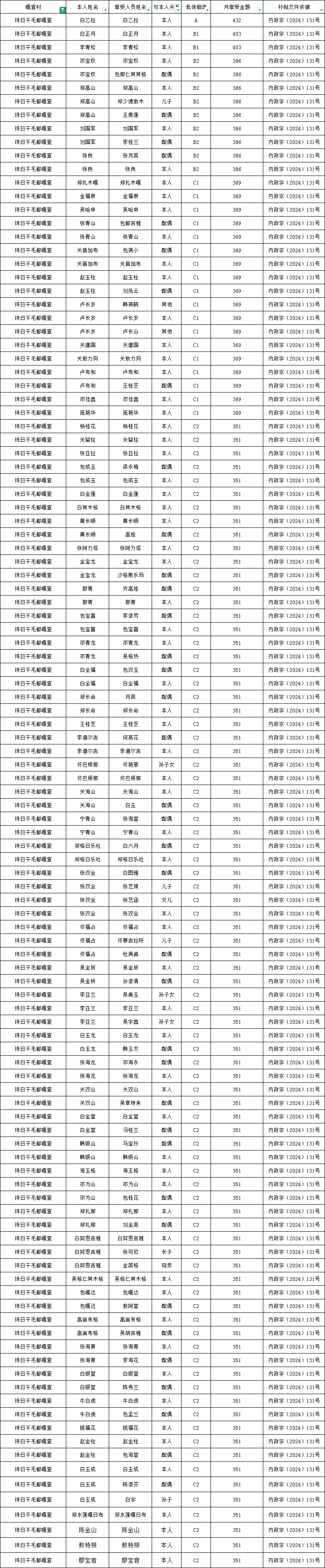 珠日干毛都嘎查2026年1月农村低保资金发放花名册