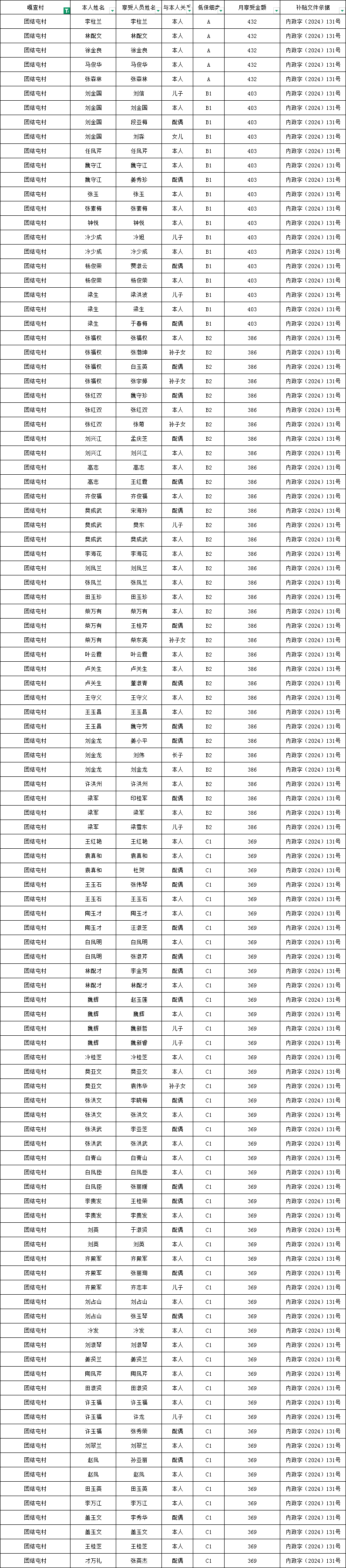 团结屯村2026年1月低保资金发放花名册