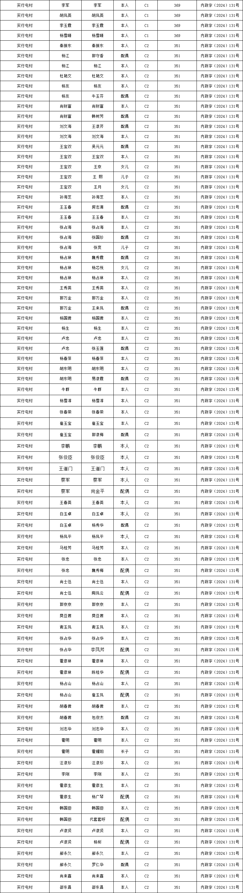 实行屯村2026年1月农村低保资金发放花名册