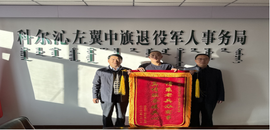 1月8日,退役军人宋巴图手持“情系老兵办实事,真情服务暖兵心”的锦旗,专程来到科左中旗退役军人事务局,将这份承载着深厚感激与诚挚信赖的锦旗,郑重送到退役军人事务局党组书记、局长尹志强手中。对退役军人事务局主要领导带领全局工作人员,高效解决退役军人急难愁盼问题的务实作风和贴心服务,表达了最衷心的感谢。