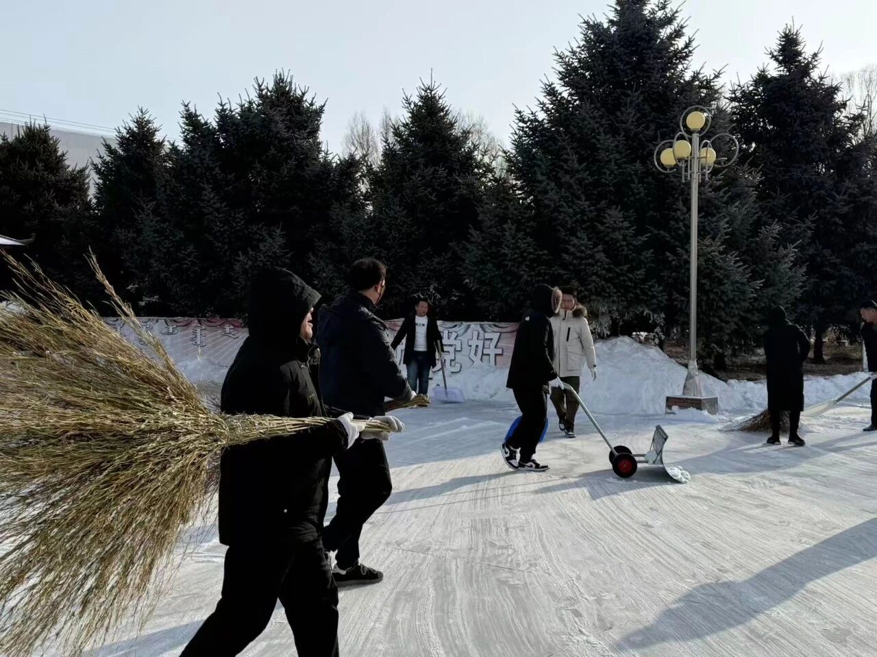 架玛吐镇组织镇机关干部及环卫工作人员,对政府广场和辖区沿街道路开展全面扫雪除冰作业。大家齐心协力清积雪、除积冰,全力消除道路通行安全隐患,切实保障群众出行安全,有效畅通辖区道路通行环境。