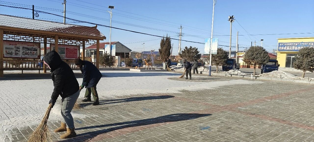 架玛吐镇苏林毛都嘎查积极开展除雪清障工作,组织工作人员对村内道路积雪进行集中清扫。