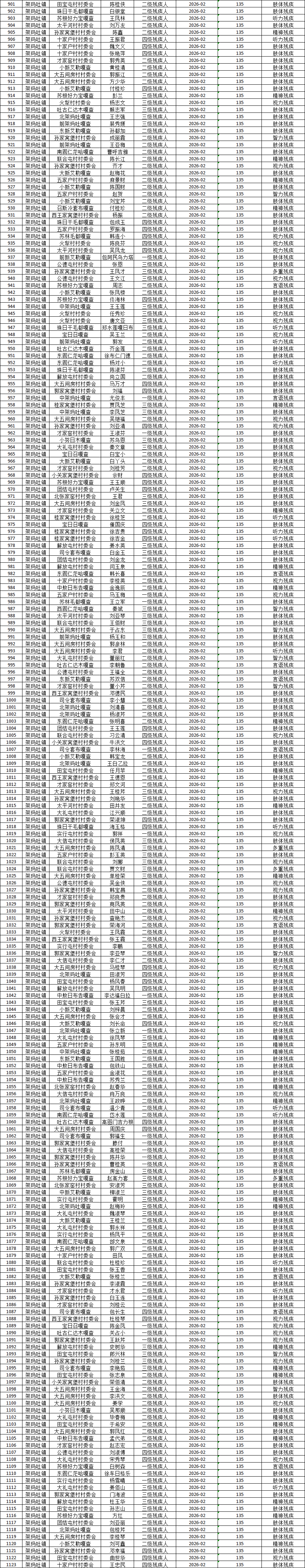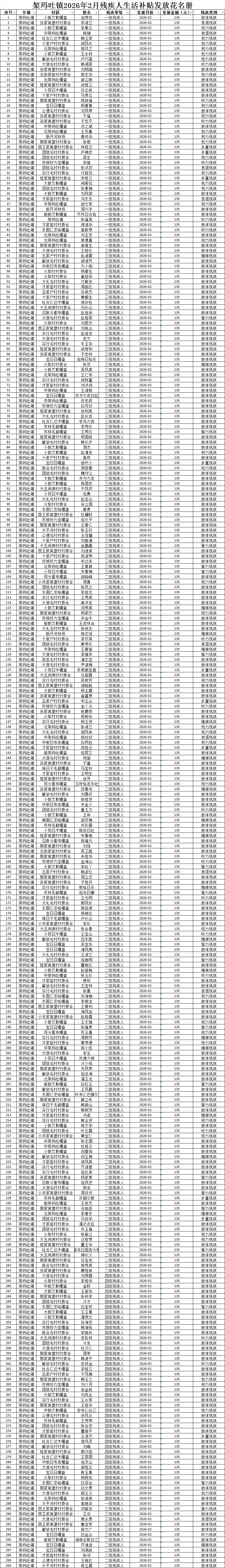架玛吐镇2026年2月残疾人生活补贴发放花名册
