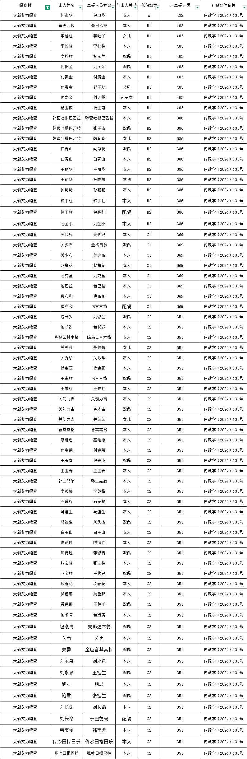 大新艾力嘎查2026年1月农村低保资金发放花名册