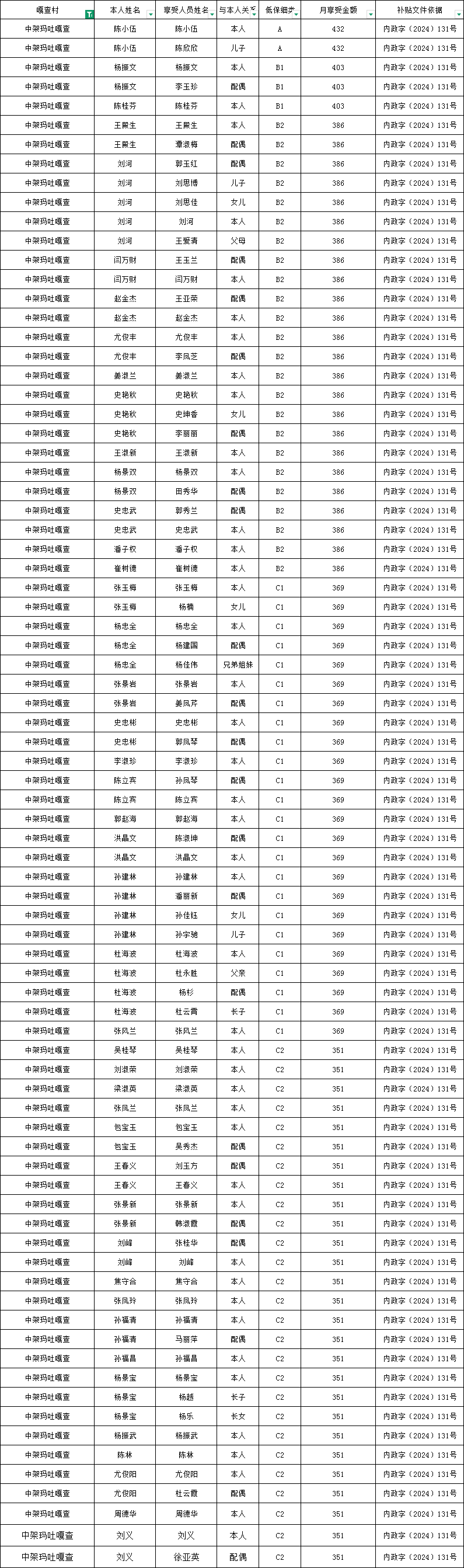 中架玛吐嘎查2026年2月农村低保资金发放花名册