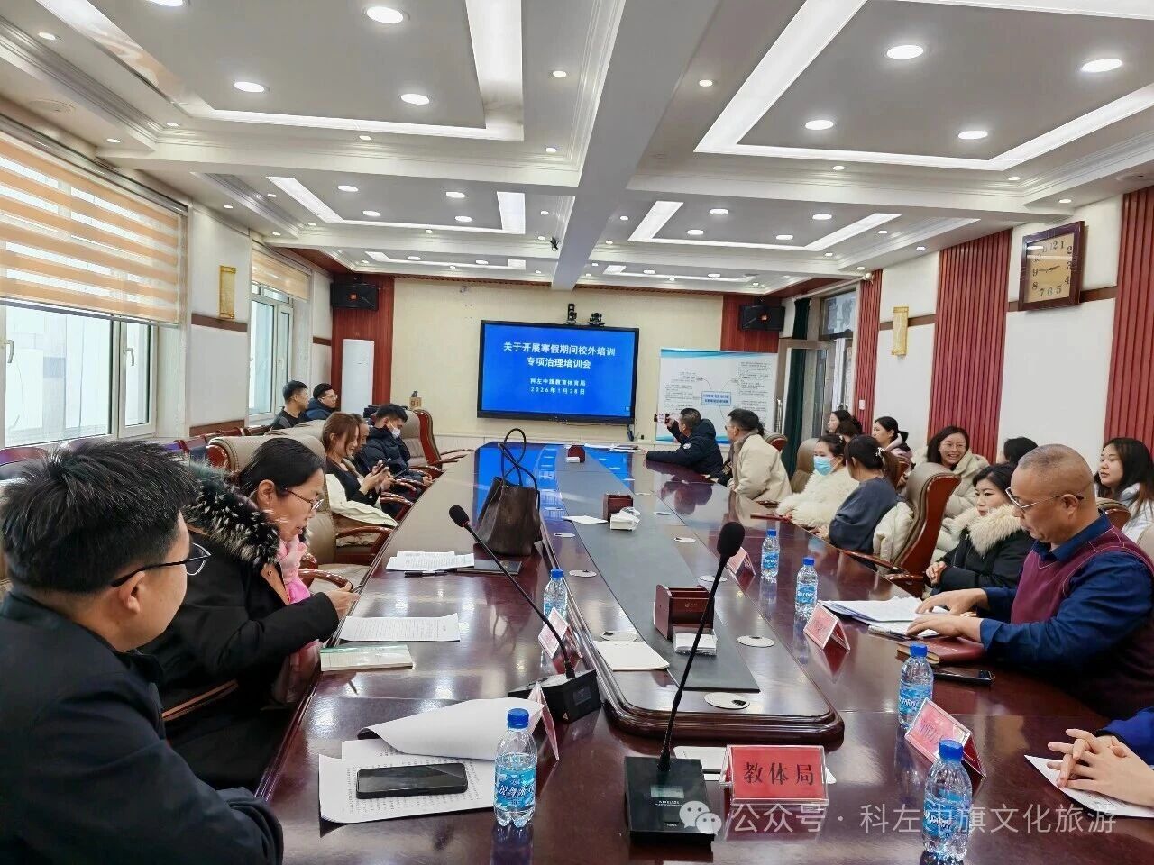 1月28日,科左中旗文化和旅游局、科左中旗教体局等部门联合召开全旗文化艺术类校外培训专项治理培训会。全旗各校外培训机构主要负责人参加。本次培训紧扣校外培训领域突出问题,聚焦行业监管强化与规范发展引导,针对性开展专题部署。旗文化市场综合行政执法局局长杨国忠结合当前校外培训行业发展现状与监管工作要求,深入解读相关政策文件核心要义,明确专项治理工作重点方向与实施标准,为文化艺术类校外培训机构规范运营提供精准指导,助力全旗校外培训业态实现健康有序发展。