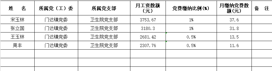 科左中旗门达镇卫生院2026年2月份党费收缴情况