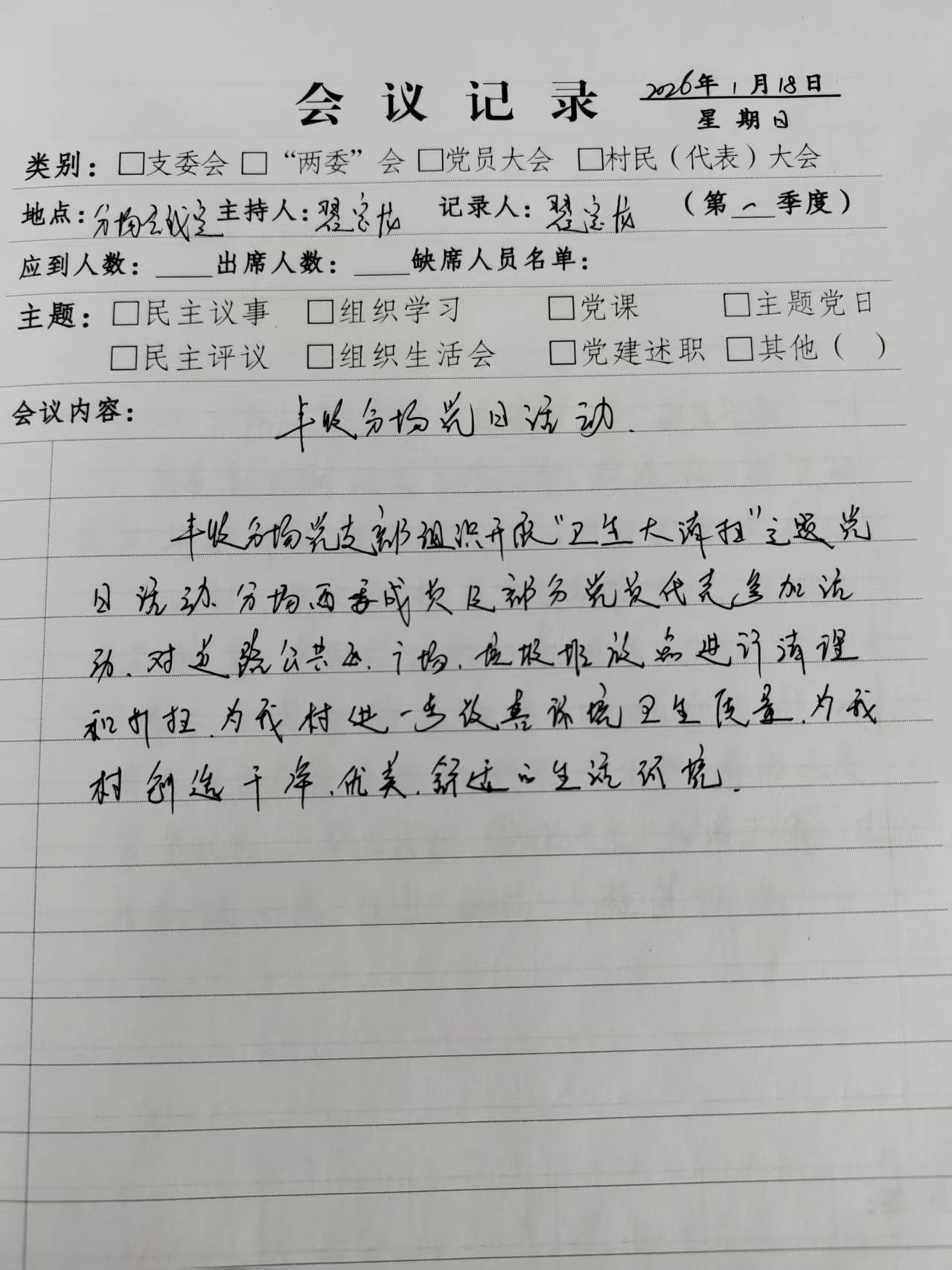 丰收分场2026年度1月份党日活动