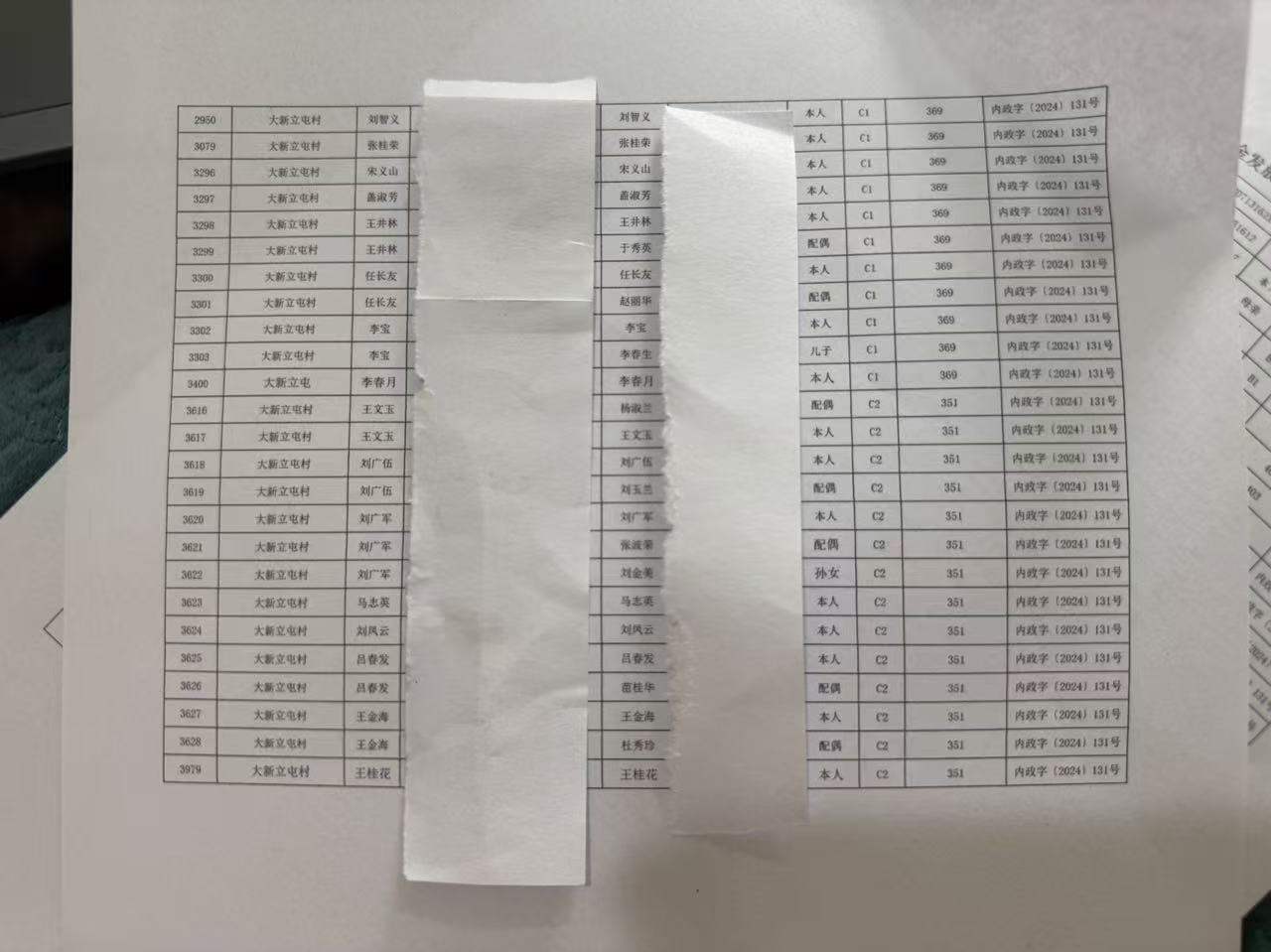 保康镇大新立屯1月份农村低保资金发放花名册