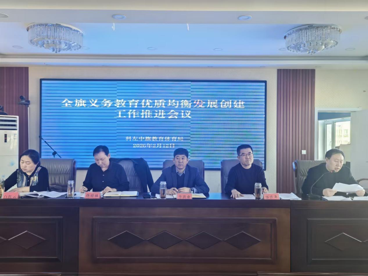 为加快推进义务教育优质均衡创建工作,精准部署下一阶段重点任务,2月12日上午,科左中旗教体局召开创建义务教育优质均衡发展县工作推进会。旗教体局班子成员、各股室负责人、创建专班全体成员以及全旗各义务教育阶段中小学书记、校长和分管副校长等100余人参会,会议由旗教体局副局长邰铁龙主持。