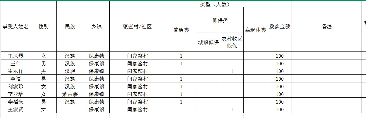 保康镇闫家窑村2026年2月高龄津贴应发放人员明细表