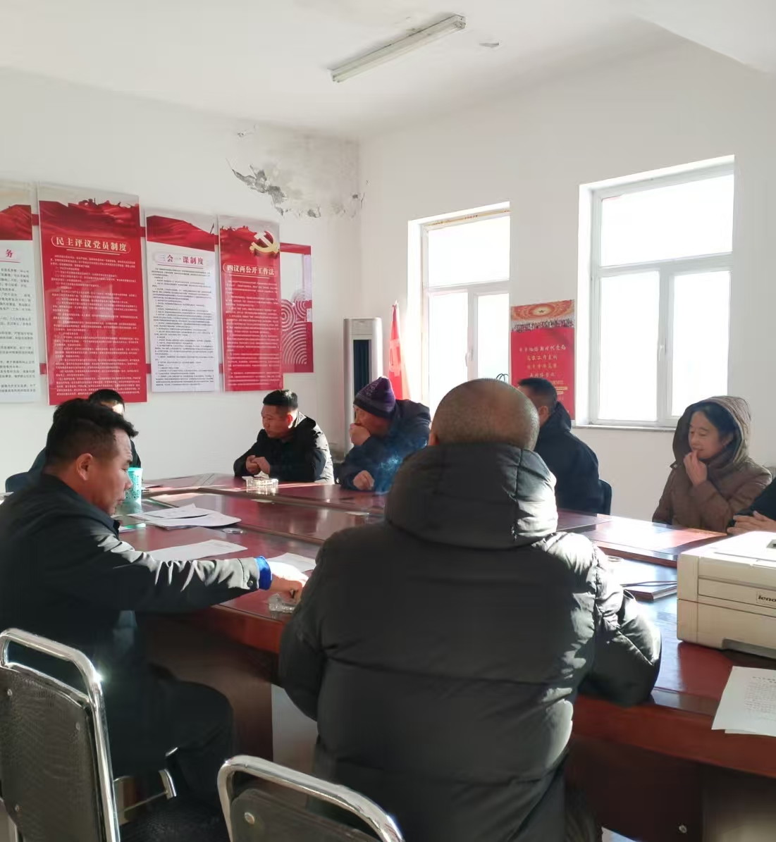 2025年12月18日,哈日乌苏嘎查党支部召开12月主题党日活动,参会党员7人,党支部书记吴文峰主持集体学习会议,集中学习:1.习近平法治思想(习近平论全面依法治国重要论述)2.习近平总书记关于党的建设的重要思想3.习近平总书记关于基层治理、乡村振兴的重要论述4.国家主席习近平发表二0二六年新年贺词,与会党员进行讨论发言。