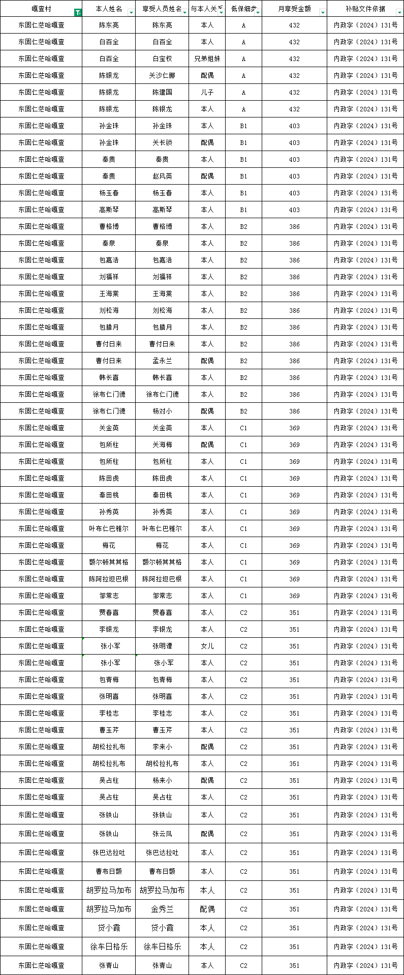 东固仁茫哈嘎查2026年3月农村低保资金发放花名册
