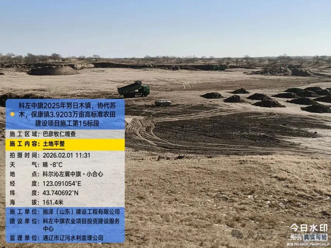 2月1日,协代苏木巴彦牧仁嘎查高标准农田建设工作有序推进,现场一派繁忙景象。本次聚焦土地平整核心任务,大型机械高效作业、人员分工协作,全力推进田块规整提质。
