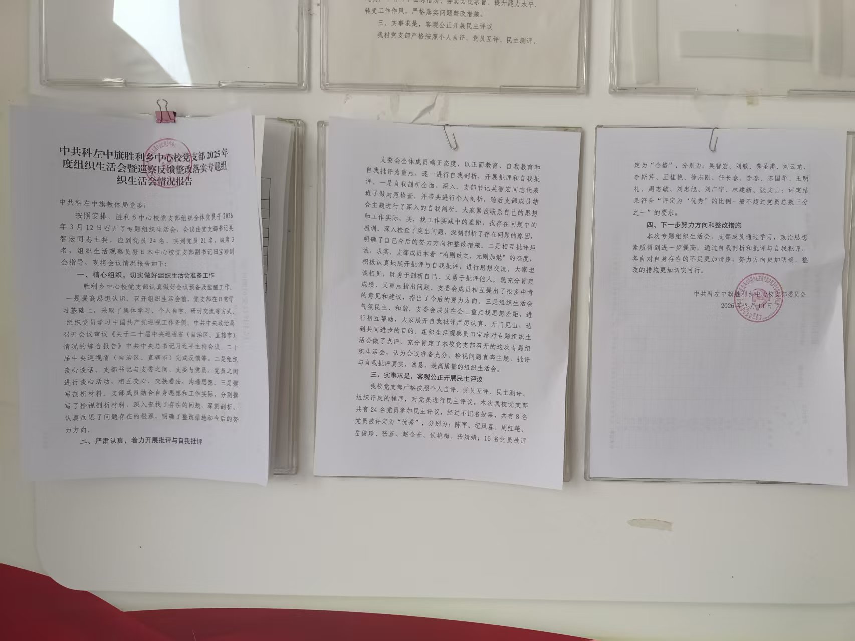 中共科左中旗胜利乡中心校党支部2025年度组织生活会暨巡察反馈整改落实专题组织生活会情况报告