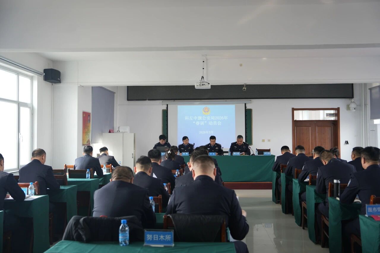 人勤春来早,砺警正当时。为深入贯彻落实新时代公安工作总要求,锻造“四个铁一般”公安铁军,夯实全年公安工作根基,2026年3月13日,科左中旗公安局召开2026年“春训”动员会暨第一期政治轮训班,各室所队教导员、中队指导员参训,以政治铸魂、实战强能为核心,吹响全警练兵集结号。
