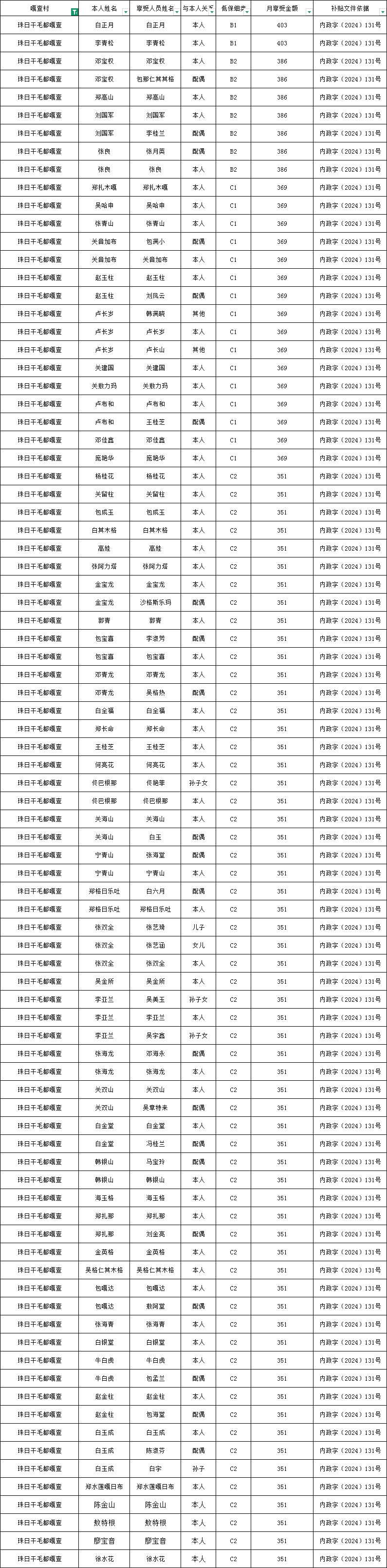 珠日干毛都嘎查2026年4月农村低保资金发放花名册